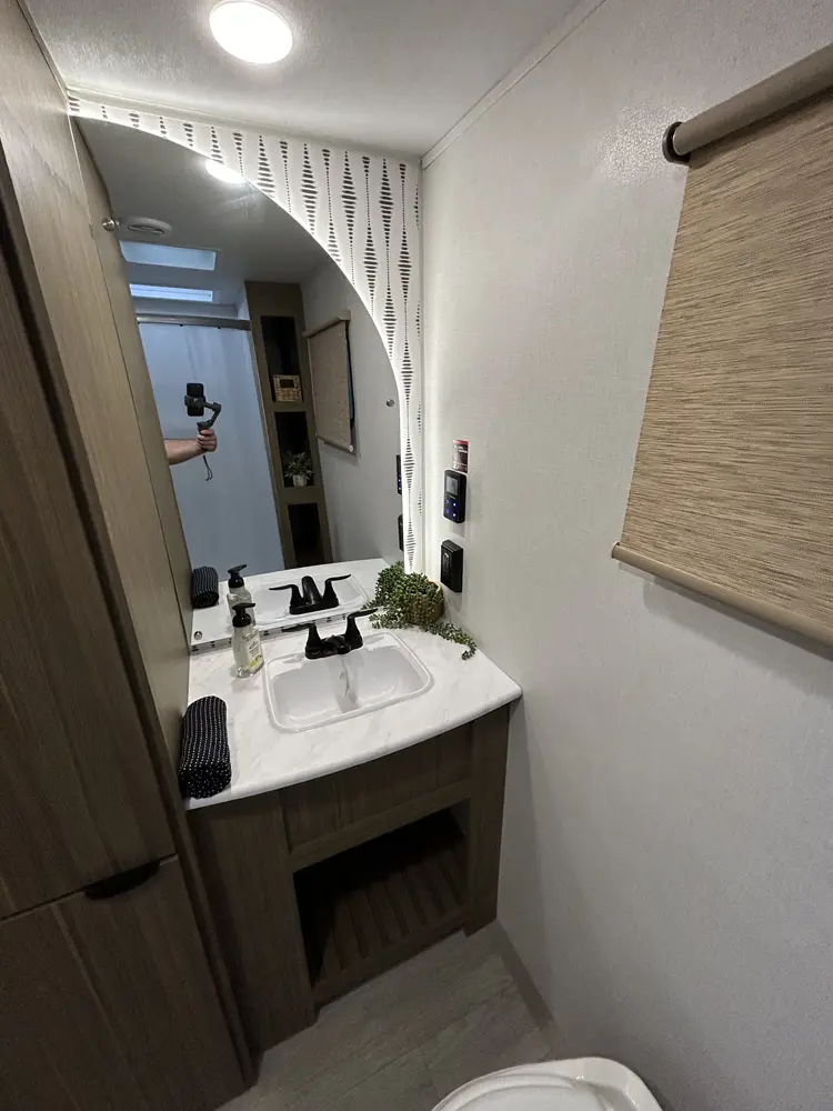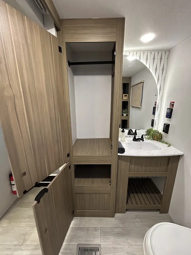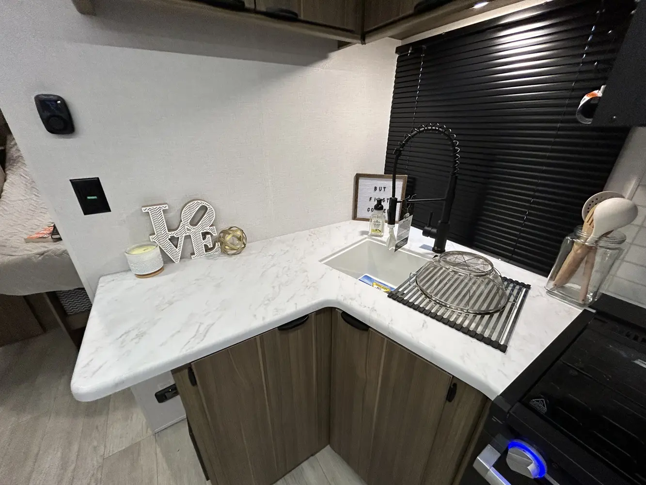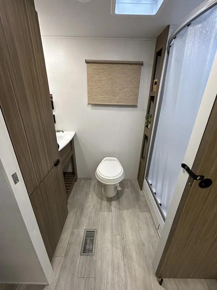 The Salem 22RBS has one entry and one slide out. Exterior features include: metal or fiberglass exterior and 16' awning. Interiors features include: front bedroom and rear bathroom.