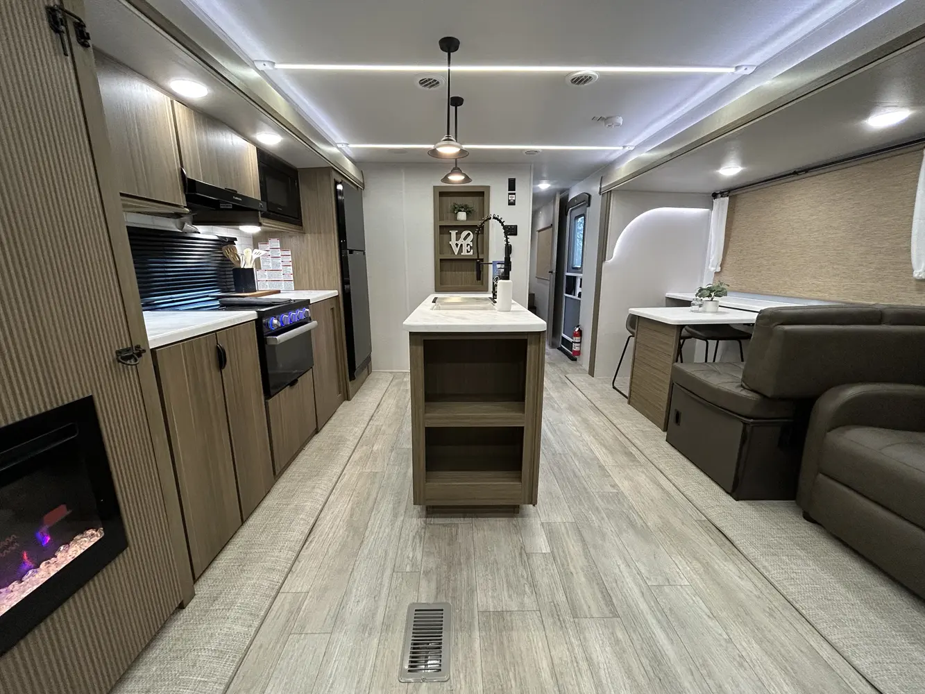 The Salem 27RE gives you a spacious living room area thanks to two slideouts. The island kitchen is well equipped with a stove top, oven, residential refrigerator, and pantry. The bathroom features a walk-in shower, plus a skylight and linen cabinet, while the front bedroom includes a walk-in closet.