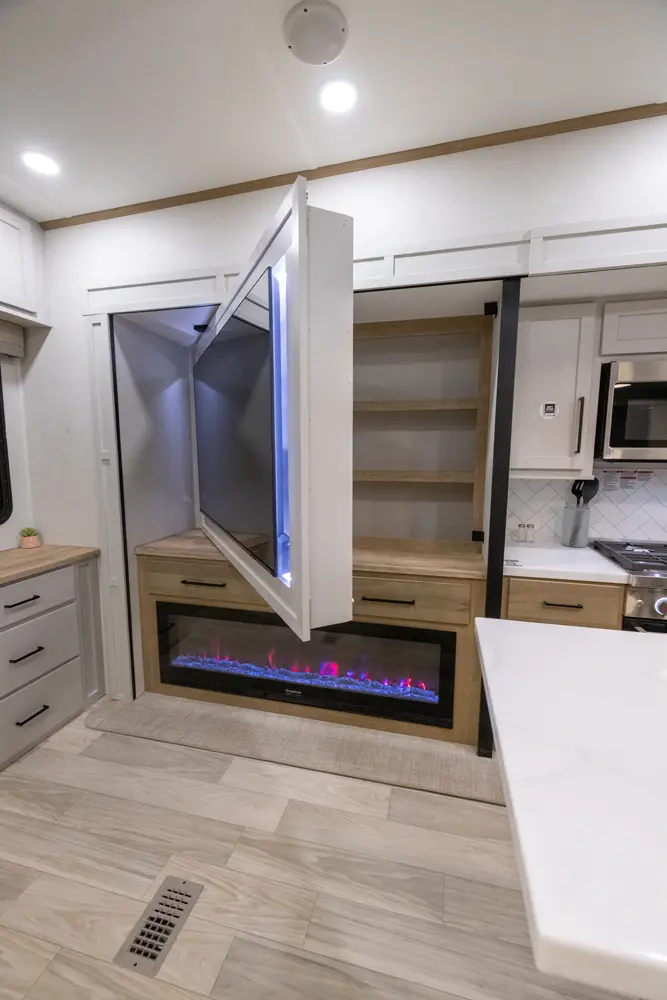 The Sierra Fifth Wheels 3900HBLR floorplan has one entry and three slide outs. Exterior features include: fiberglass exterior and 12' & 18' awning. Interiors features include: kitchen island, rear living and bathroom and a half.