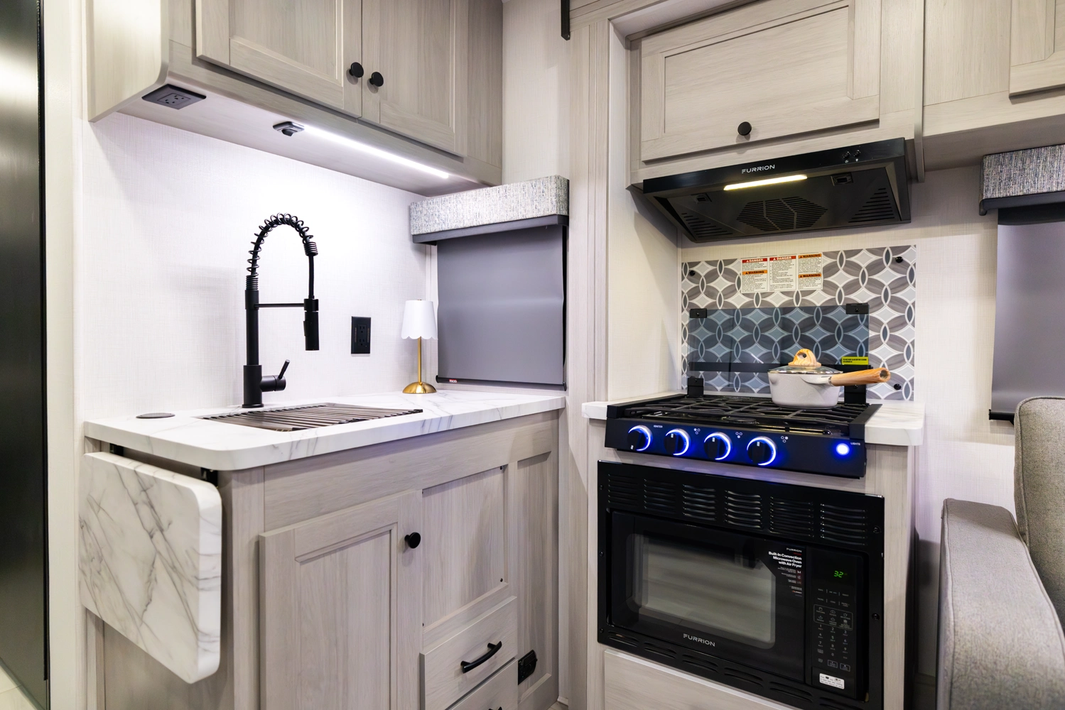 • Recessed 3-burner range with flush glass cover (2-Burner range Mercedes)