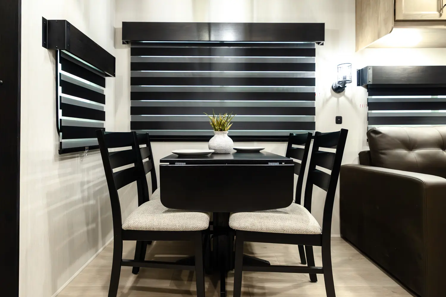 • Cherokee Black Label Timberwolf (Deep Tinted Frameless Automotive Glass Windows, High Gloss Gel Coat Exterior Sidewalls, Multicolor Reading Lights, Pillowtop Mattress Upgrade, Thermo Foil Arctic Insulation, Wall Controlled Power Shades for Living Room and Kitchen)
