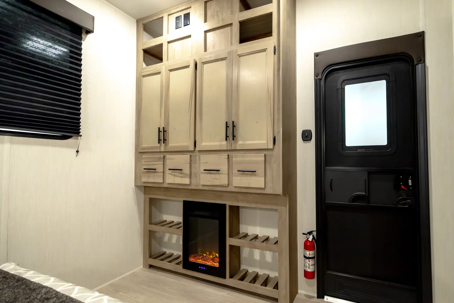• Blackout Glass, Safety Slam, Friction Hinge Entry Door with Window and Shade Prep (N/A on LP models)
