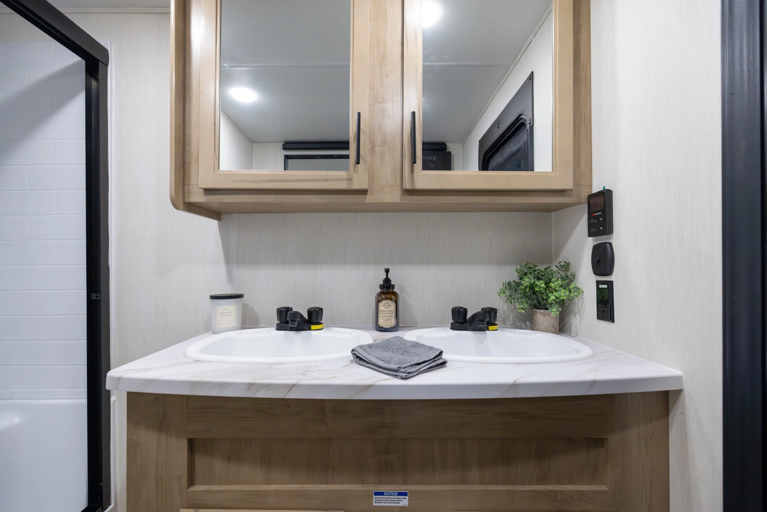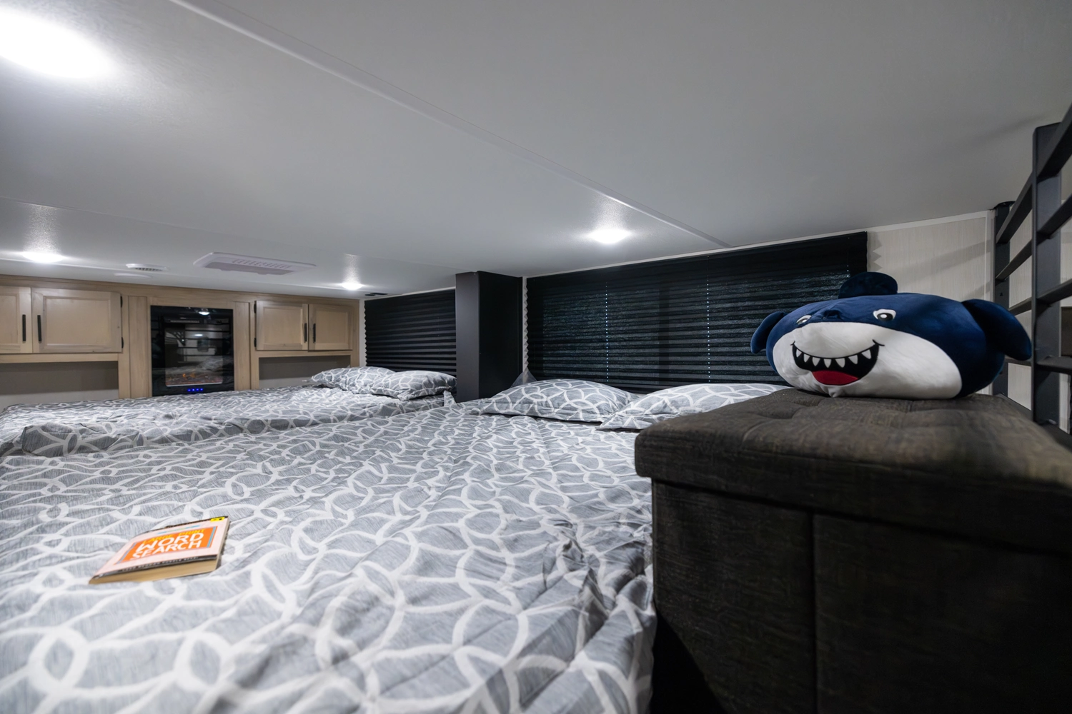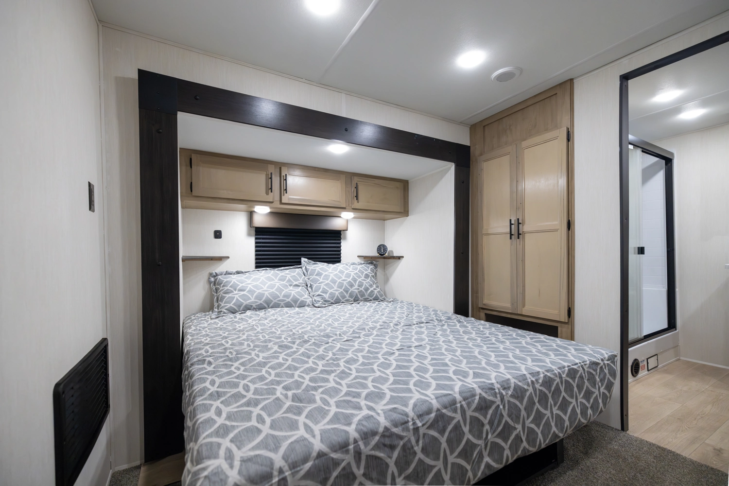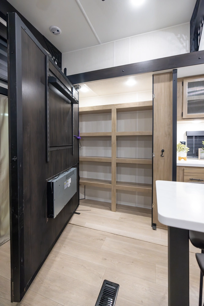 • Cherokee Black Label Timberwolf (Deep Tinted Frameless Automotive Glass Windows, High Gloss Gel Coat Exterior Sidewalls, Multicolor Reading Lights, Pillowtop Mattress Upgrade, Thermo Foil Arctic Insulation, Wall Controlled Power Shades for Living Room and Kitchen)