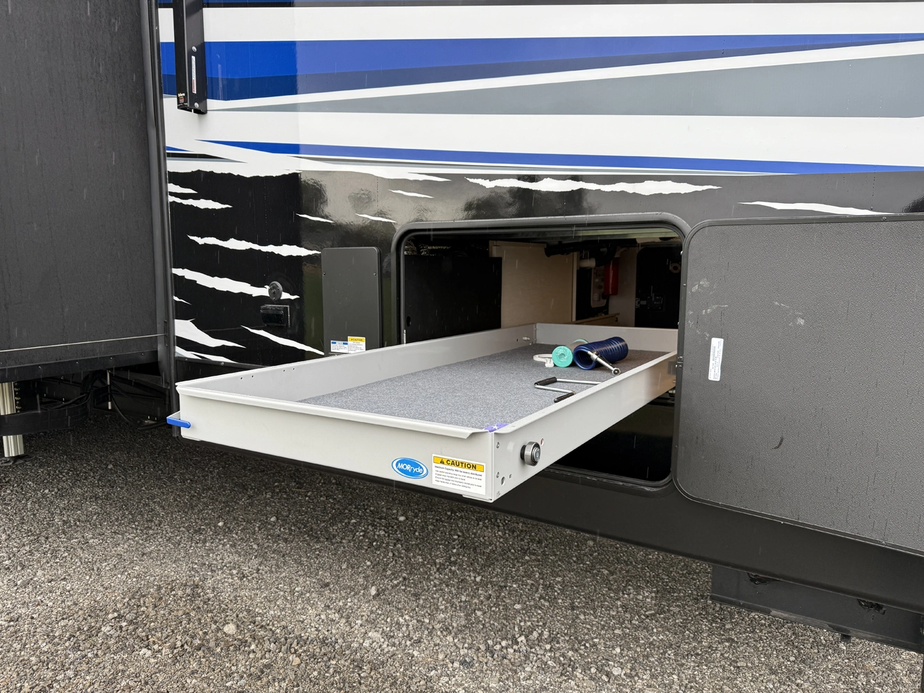Vengeance is an experience in confidence. It begins with a striking exterior featuring full-body digital paint. It’s engineered for the long haul with a standard MORryde suspension and hitch, a heavy-duty MORryde pull-out tray, and the convenience of a powered cord reel. These are not options; they are the foundation.