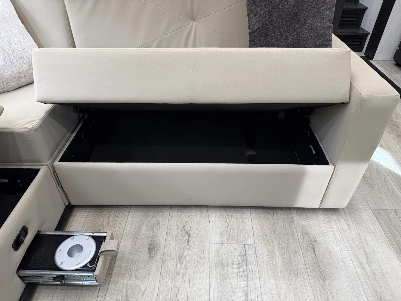 • Exclusive Padded Headboard with Flip Down Arm Rests