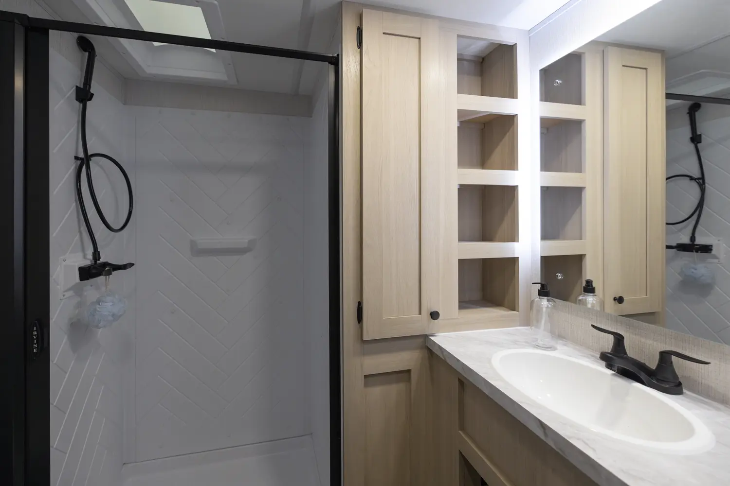 The 33CHEF is a functional rear kitchen floorplan that’s perfect for couples who love to cook and need space to work remotely! With its innovative design, spacious living room, and premium features, this 5th wheel is sure to impress.