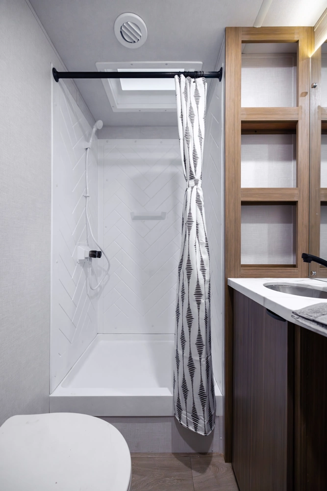 • Full Walk on Roof with SuperFlex Roof Membrane for Longevity w/ 5" Bowed Truss Roof Rafters