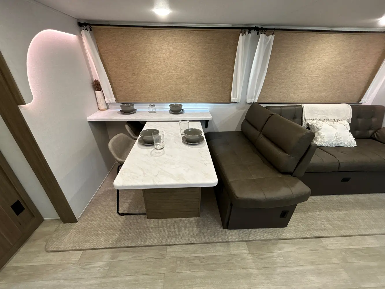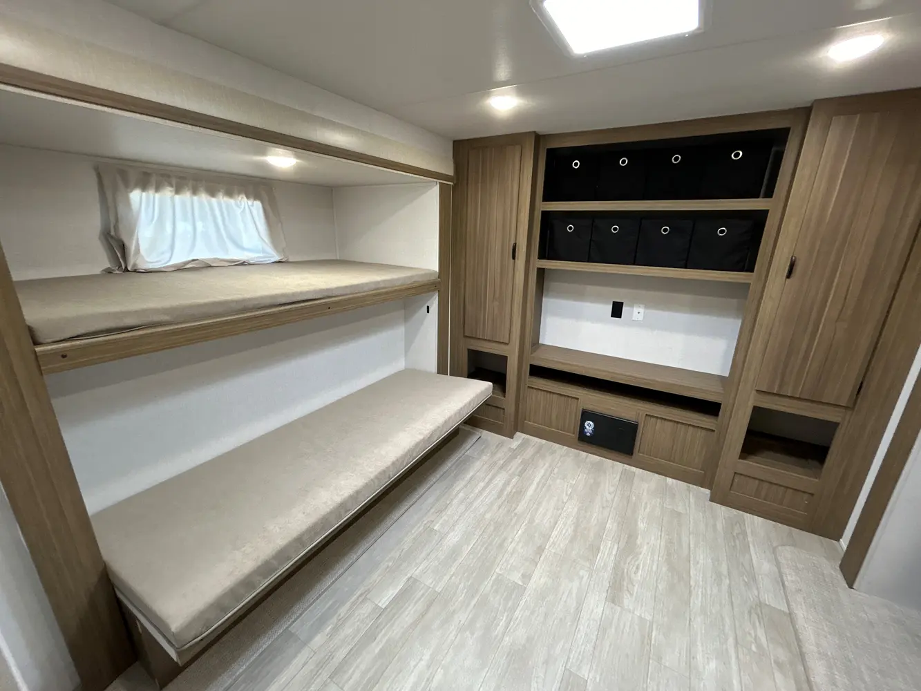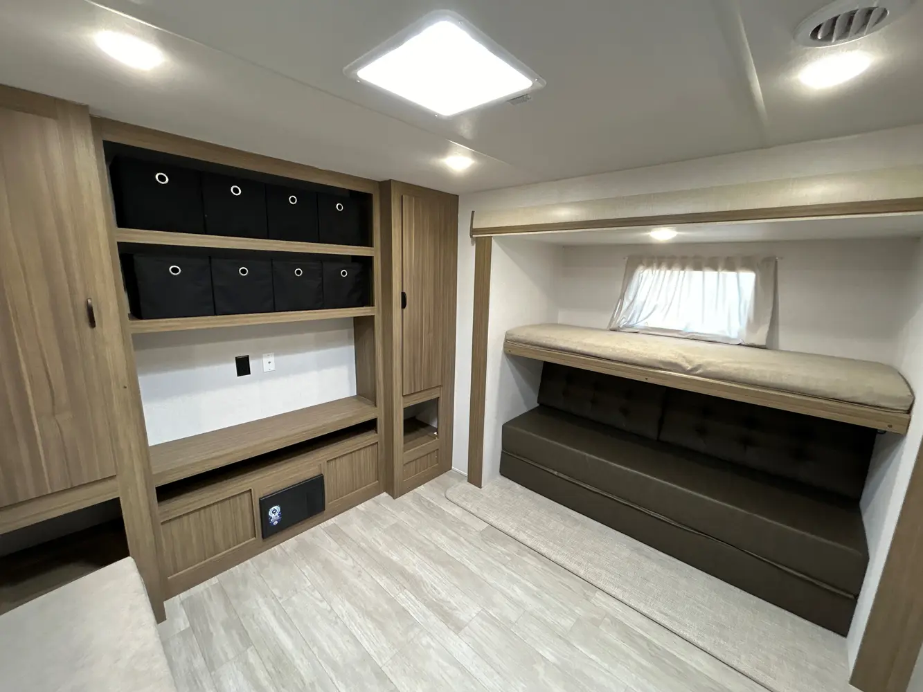 The 31KQBTS is the ultimate bunkhouse, with three total slide outs and an outside kitchen. This well-equipped travel trailer features oversized panoramic windows, the ever-popular U-dinette, which you can customize with the adjacent Versa-Lounge. The kitchen includes a 11 CU. FT. refrigerator and stovetop with oven and LED accents, plus cabinets for all your cooking essentials!