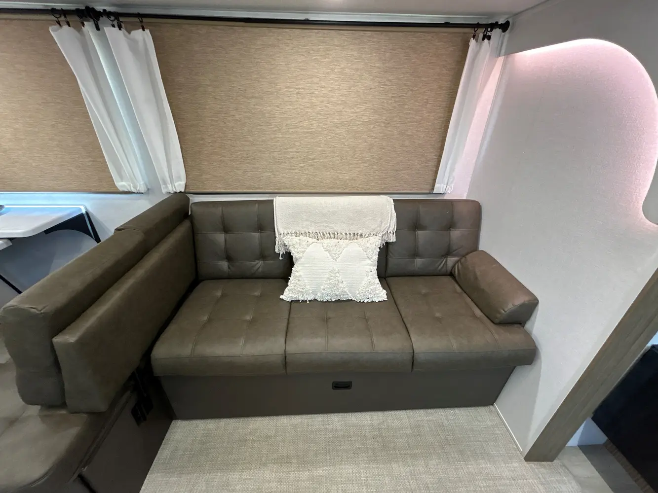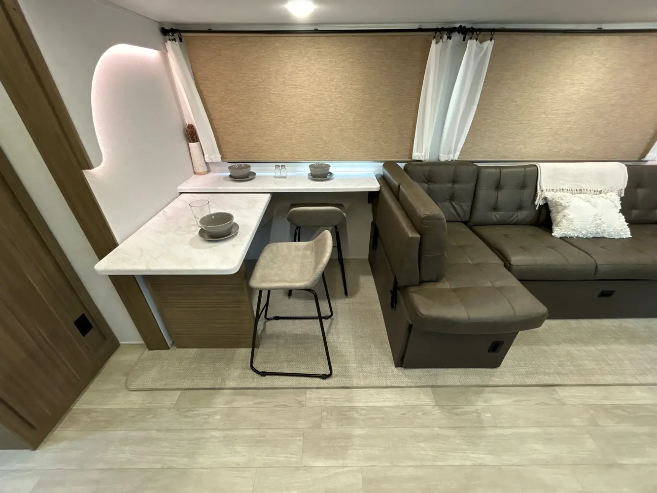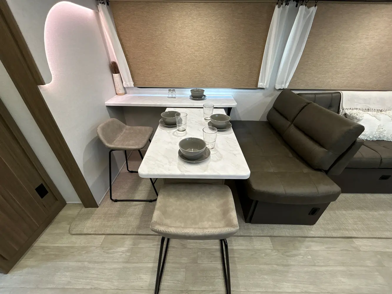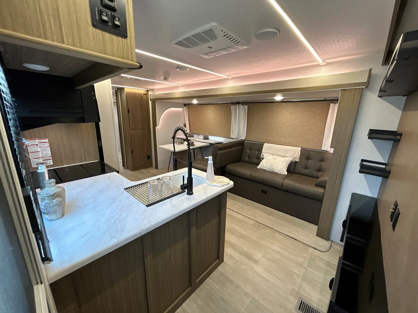 The 31KQBTS is the ultimate bunkhouse, with three total slide outs and an outside kitchen. This well-equipped travel trailer features oversized panoramic windows, the ever-popular U-dinette, which you can customize with the adjacent Versa-Lounge. The kitchen includes a 11 CU. FT. refrigerator and stovetop with oven and LED accents, plus cabinets for all your cooking essentials!