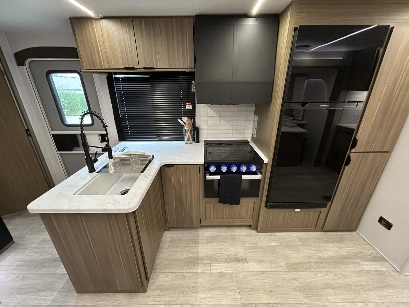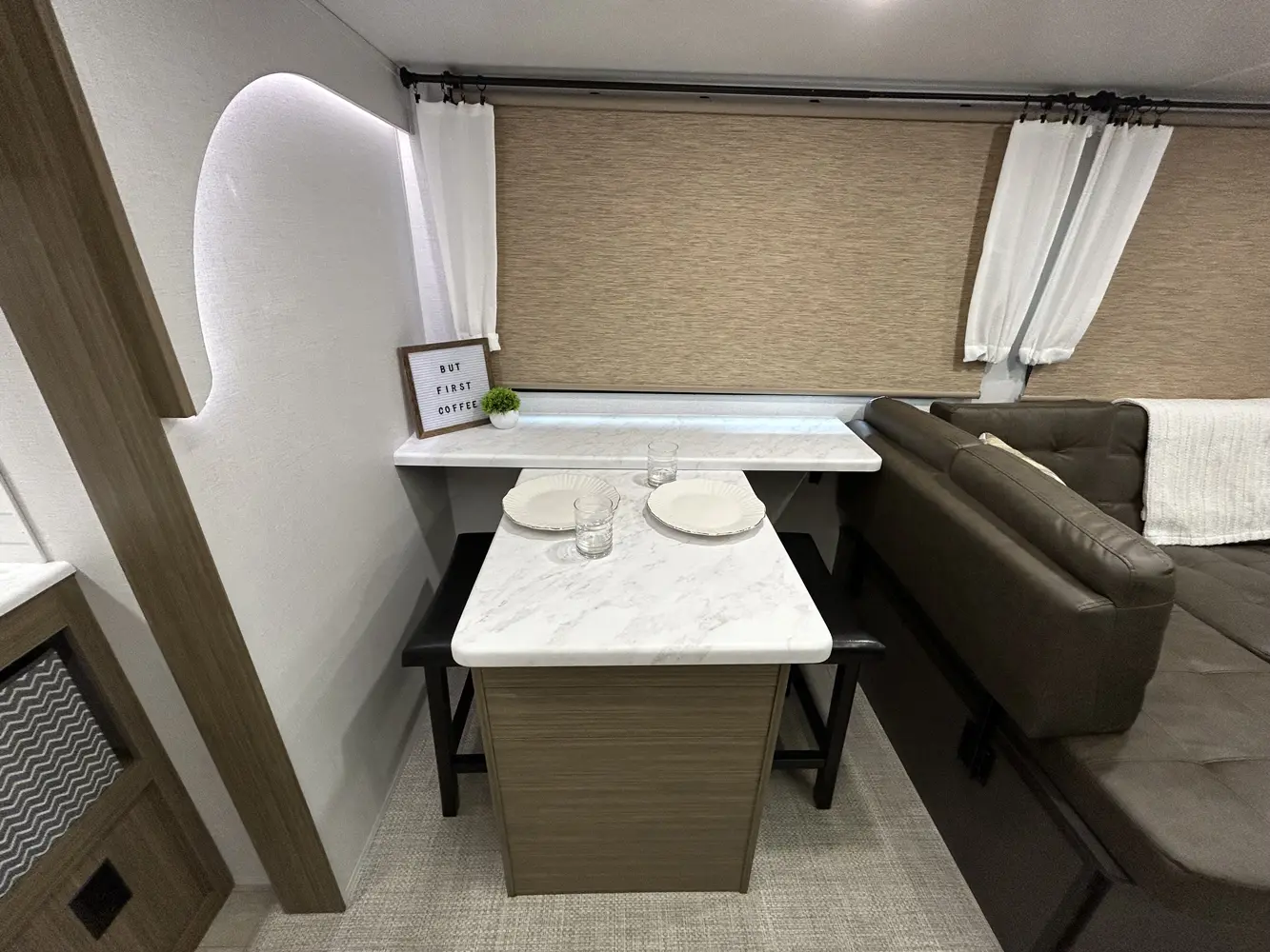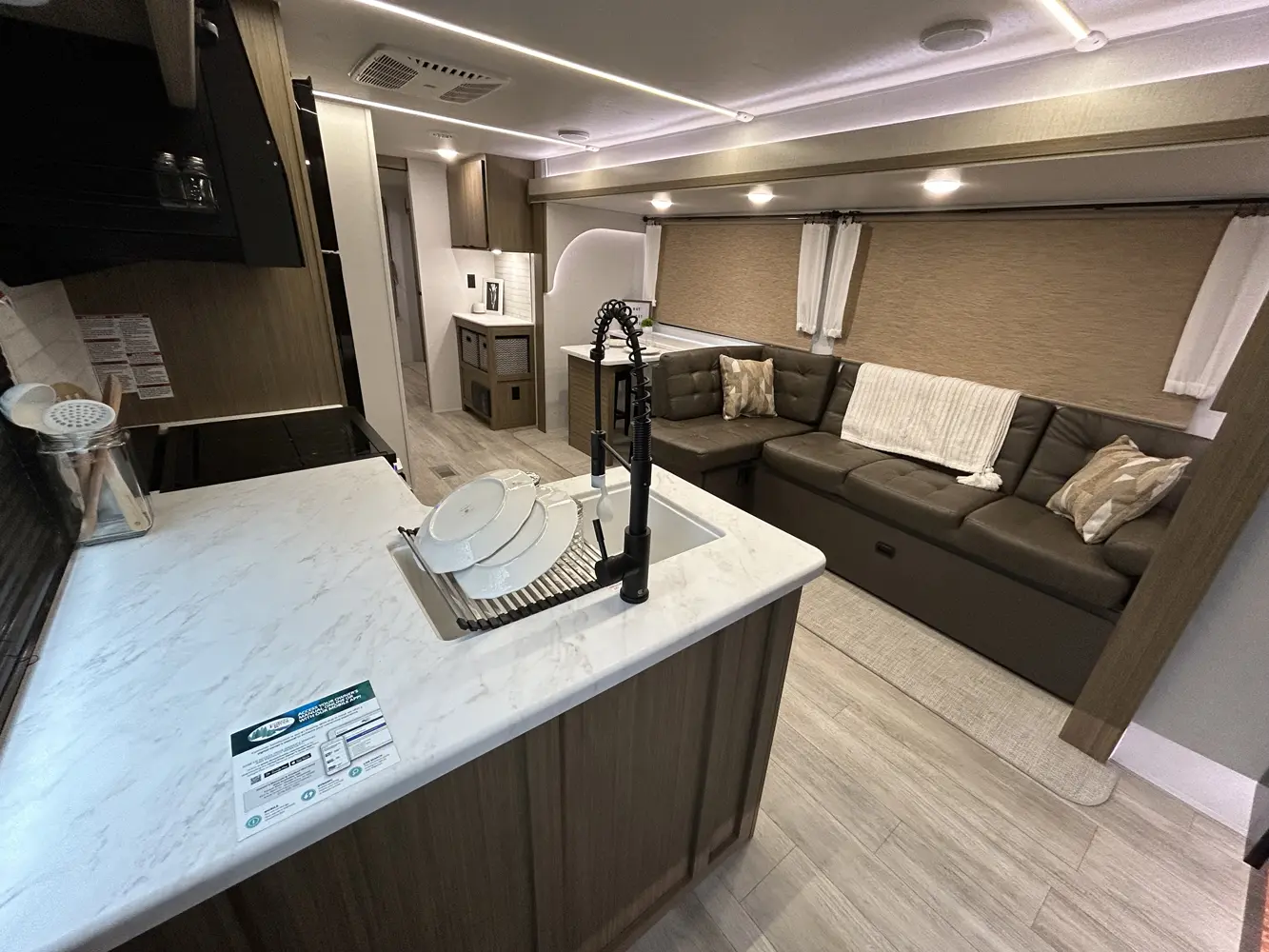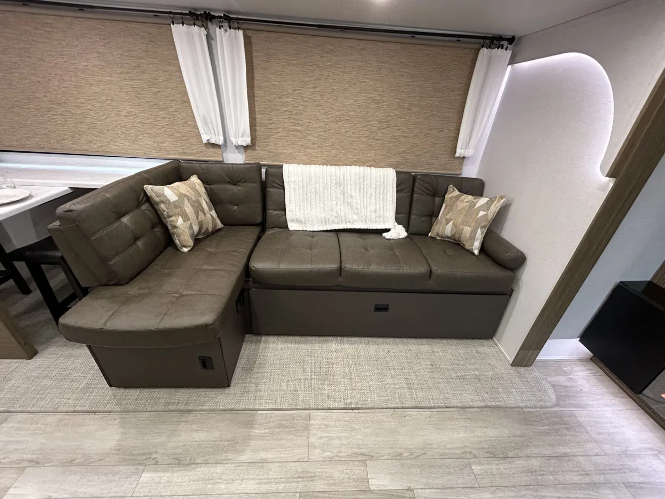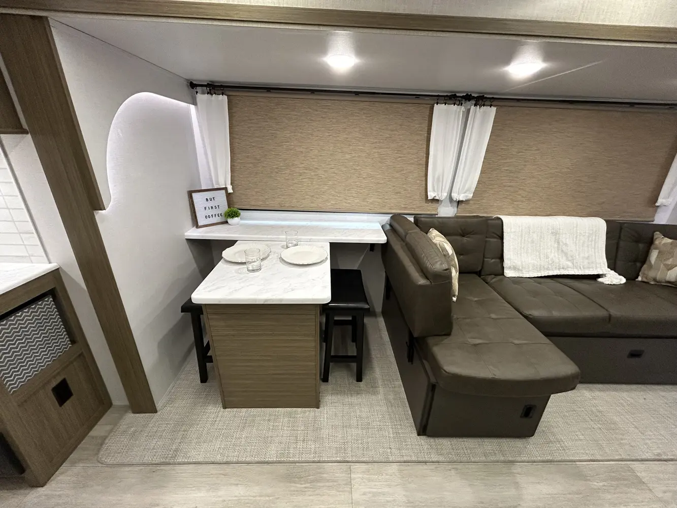 The 32BHDS is the ultimate bunkhouse, with two total slide outs and an outside kitchen. This well-equipped travel trailer features oversized panoramic windows, the ever-popular U-dinette, which you can customize with the adjacent Versa-Lounge. The kitchen includes a 11 CU. FT. refrigerator and stovetop with oven and LED accents, plus cabinets for all your cooking essentials!