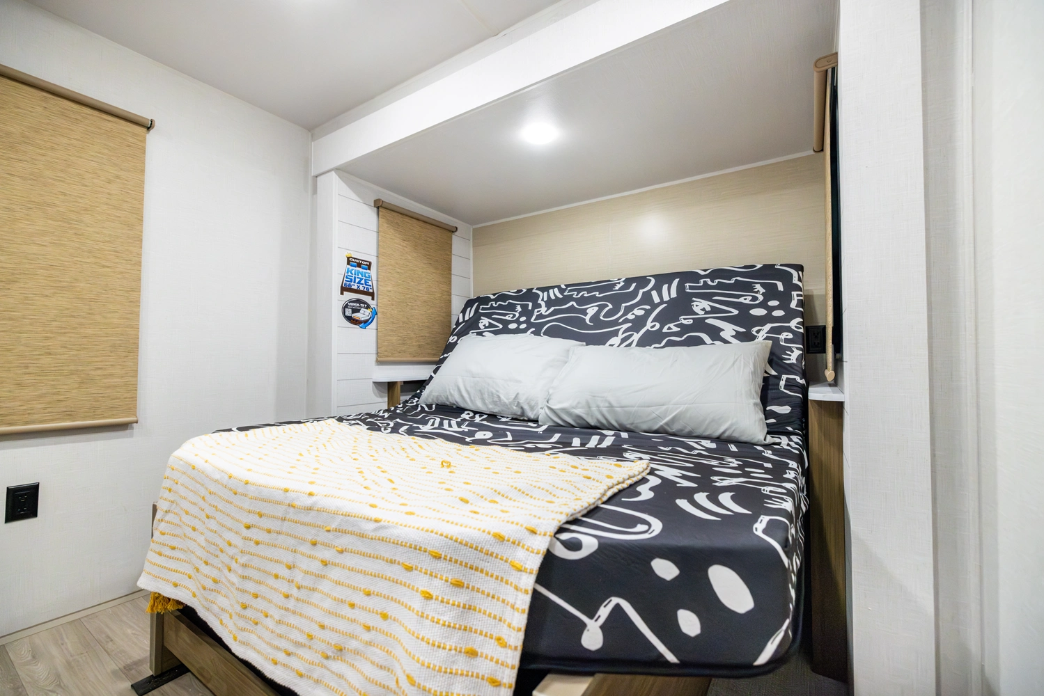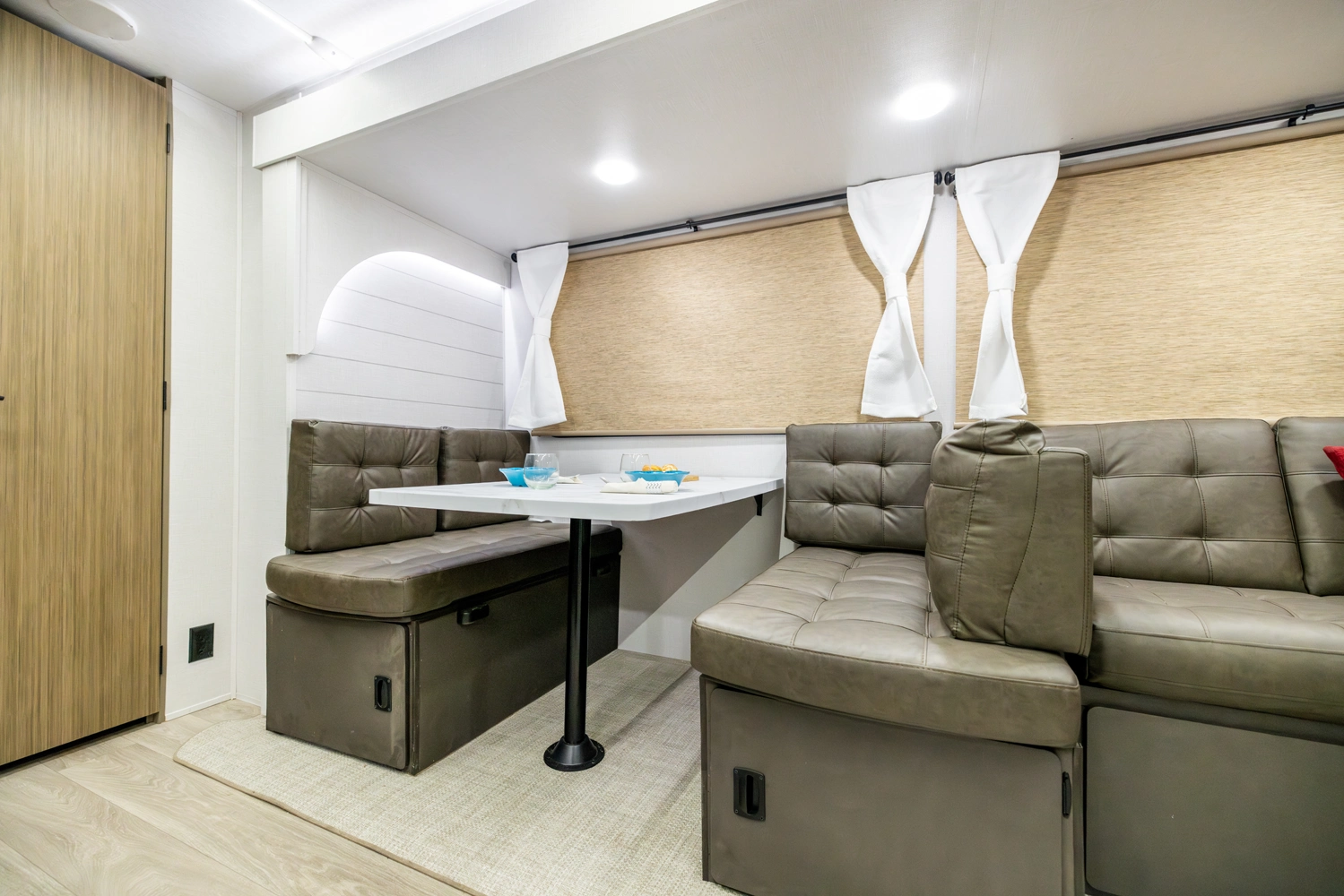 The 36VBDS is a unique, versatile bunkhouse that offers ample sleeping options so you can bring everyone camping! The front bedroom offers both the Versa-Queen and Versa-bunks, while the rear bedroom provides a queen bed, dresser, and closet. The living area features the fantastic Versa-Lounge with panoramic windows for great campsite views. Do not forget about the Stow N Go Storage conveniently below the Versa-Lounge.