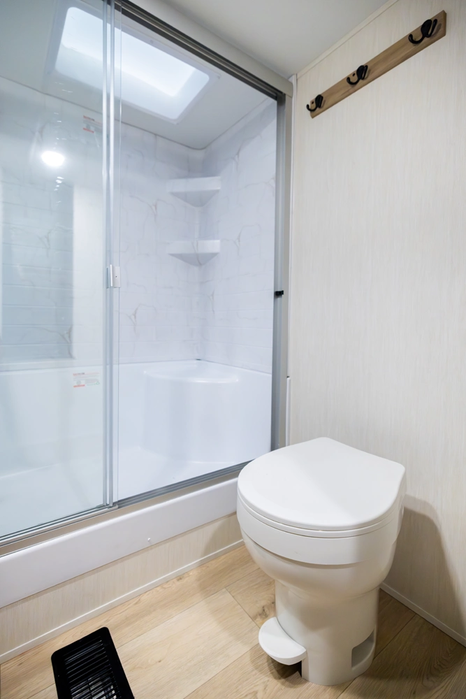 • Blackout Glass, Safety Slam, Friction Hinge Entry Door with Window and Shade Prep (N/A on LP models)