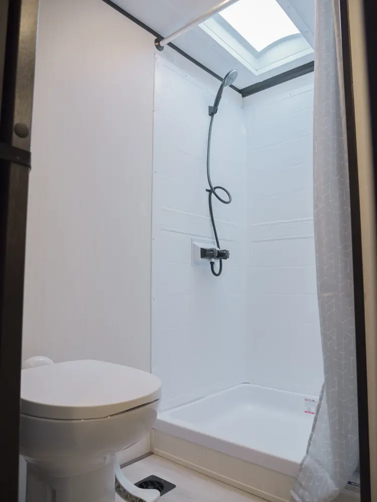 The Wolf Pack 365PACK15.5 floorplan is a toy hauler that has two entries and one slide out. Exterior features include: fiberglass exterior and 12' & 18' awning. Interiors features include: loft, front bedroom and bathroom and a half.