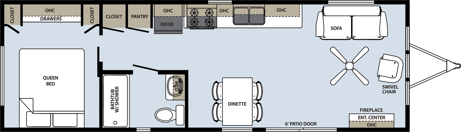 The Summit 355FL-C-S offers 377 sq ft with one bedroom and one bath. On a rugged steel I-beam chassis with R22 insulation, it delivers strong structure and efficient energy performance, ideal for Canadian seasonal stays or getaways.
