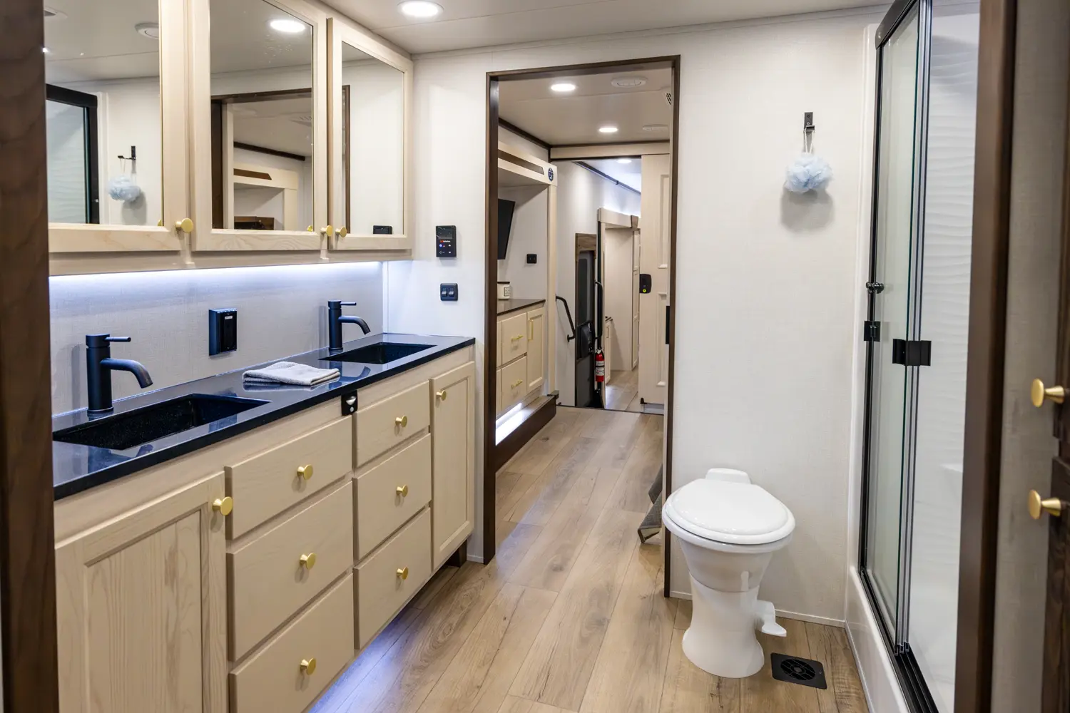 • Large Single or Double Sink Bath Vanity with Solid Surface Counter