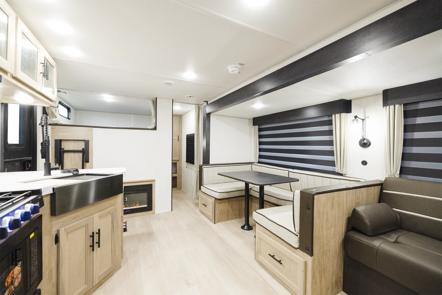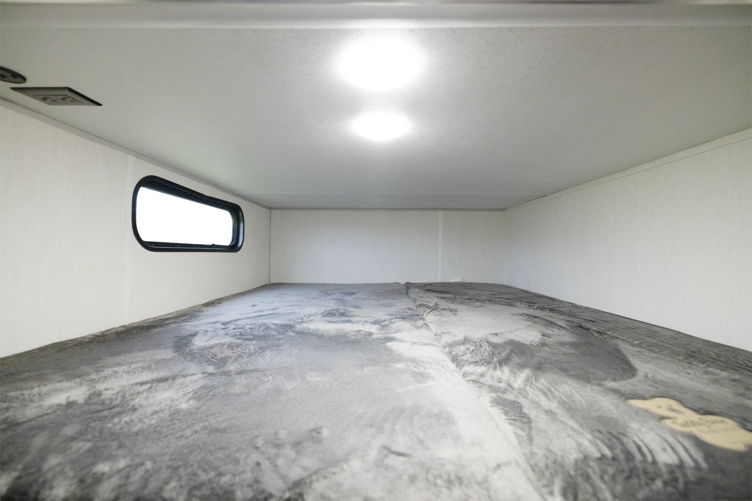 This innovative model lets the customer escape the ordinary with this 3 bedroom model. What separates the 294GEBG from the rest is the rear sleeping areas where a full queen loft bed is featured along with a private bunk area off to the side. This separation created privacy and allows for a Full Bar and Grill featuring an exclusive side-by-side refrigerator and freezer, ice maker, pull-out cooktop, sink and large storage areas.