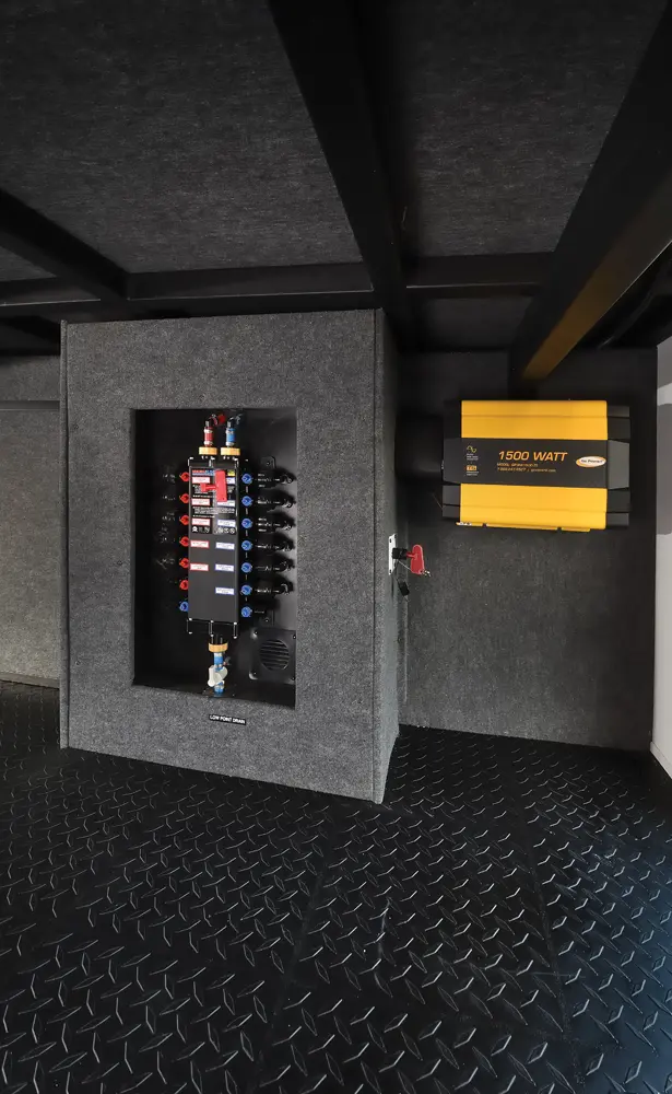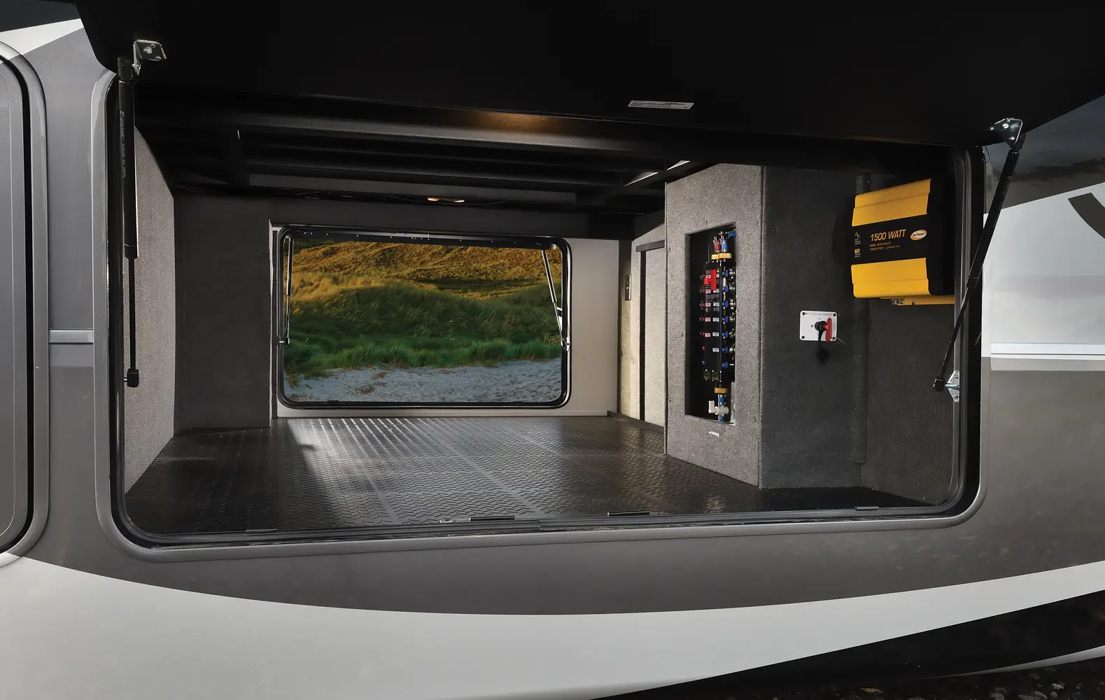 • Two Dual 6V or 12V Slide-Out Battery Trays