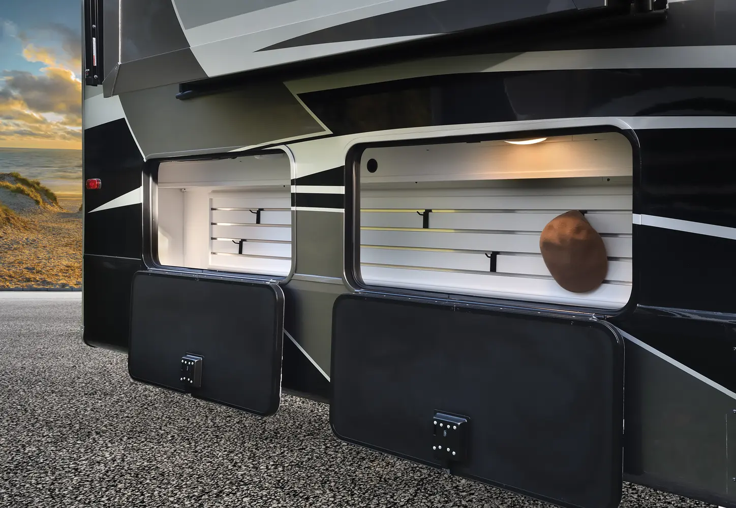 • Hydraulic Slideouts on Main Level and Bed Slides