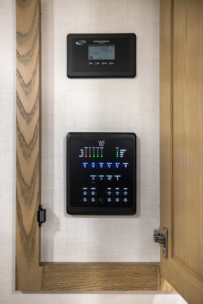 Our first front living fifth wheel under 30' delivers big luxury in a compact design! The front living area features a 60" theater seat, rotating dinette, and televator TV. The kitchen offers a full pantry, fridge, and ample counter space, while the rear bedroom includes a queen bed (king optional), wardrobe, vanity, and washer/dryer prep. With dual awnings and pass-thru storage, it’s perfect for easy towing and upscale comfort.