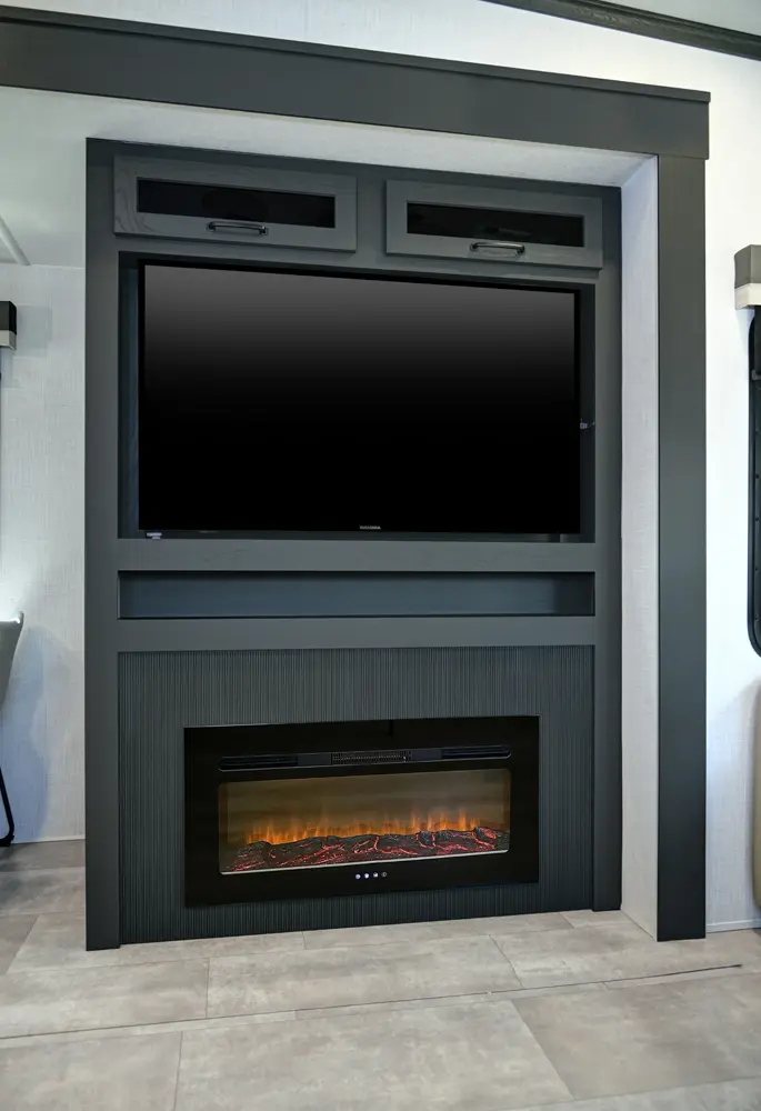 The Flagstaff Classic Fifth Wheels F372RL floorplan has one entry and three slide outs. Exterior features include: fiberglass exterior, 10' & 18' awning and outside kitchen. Interiors features include: kitchen island, front bedroom and rear living.