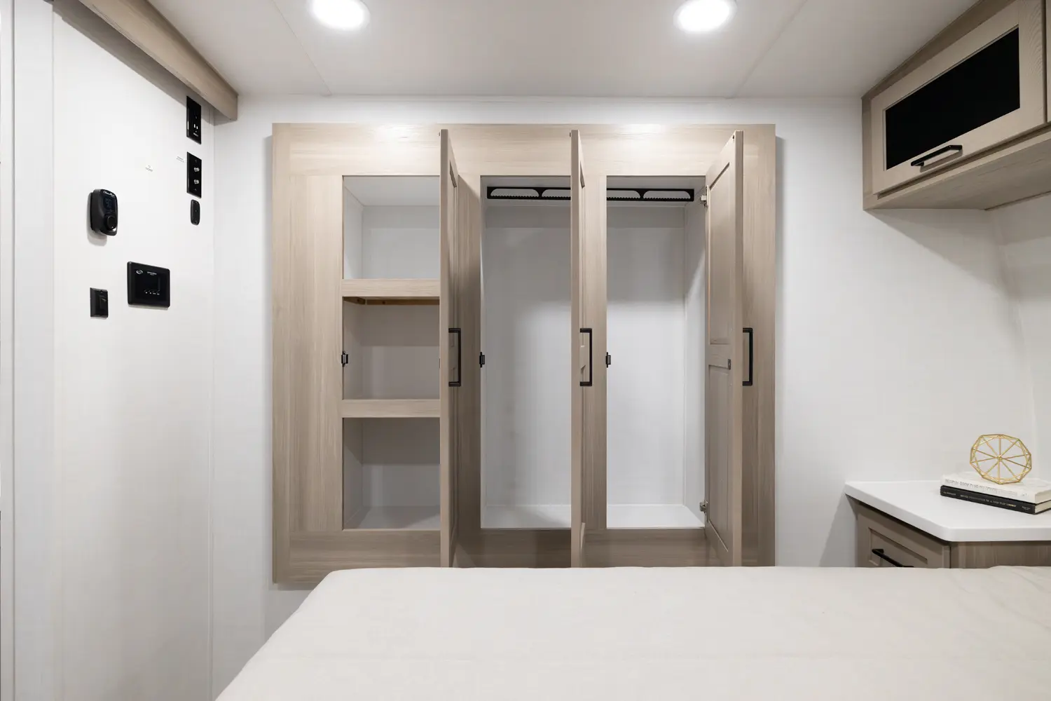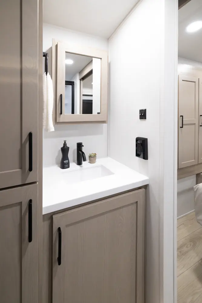 • Platinum Package: Auto Leveling, Frameless Windows, 1800W Inverter, MORryde Strut Assist Entry Step, Dual 30 LP Tanks