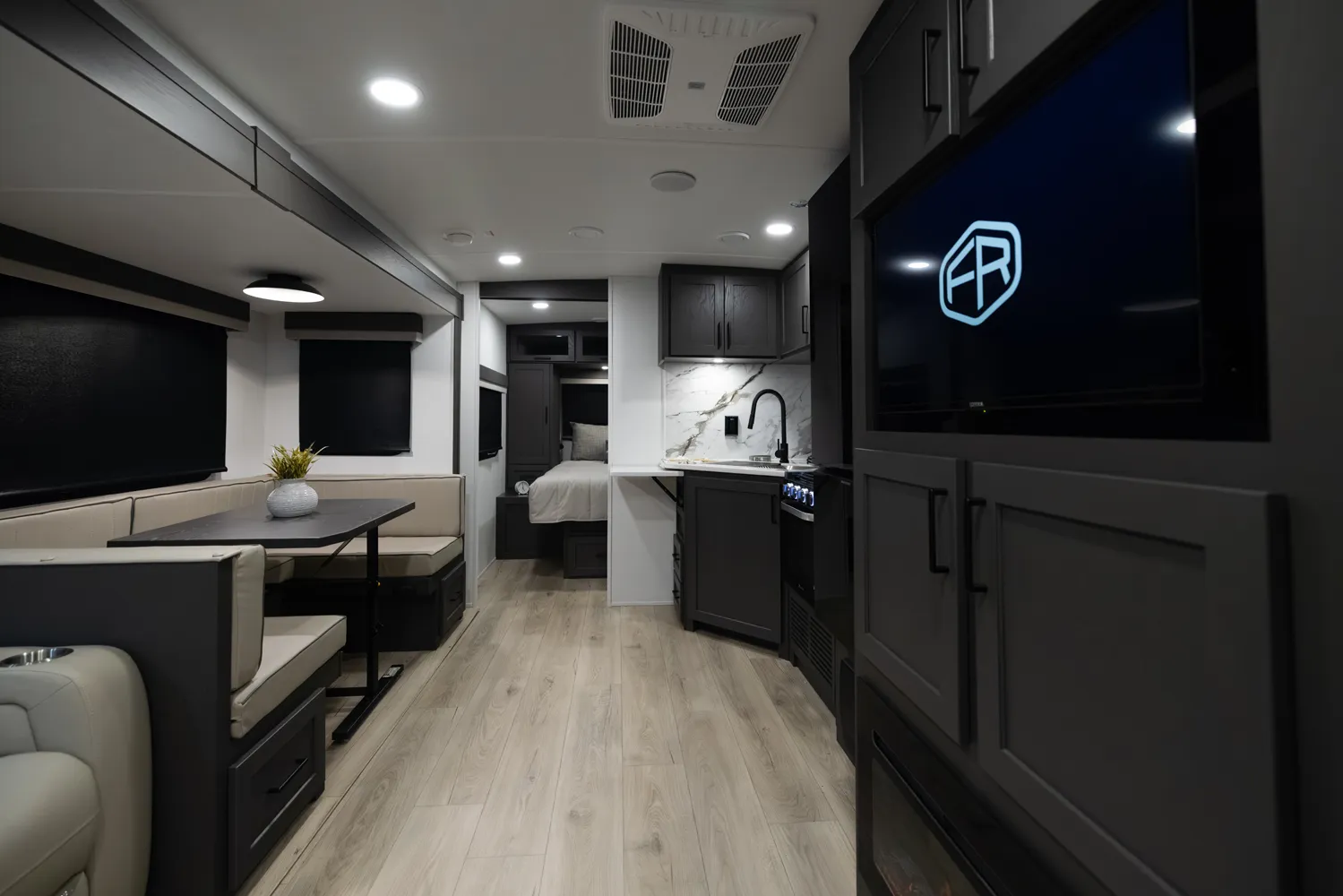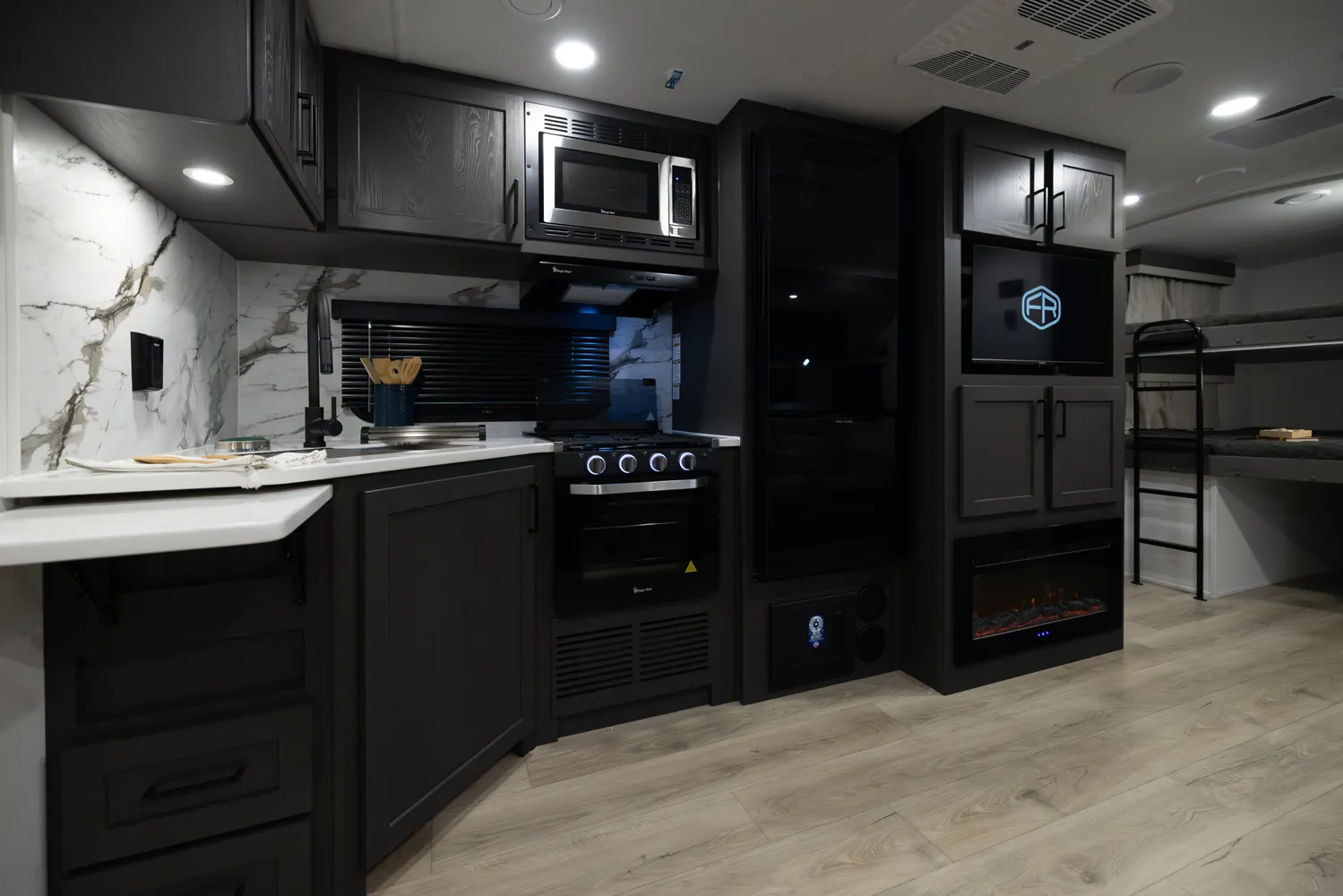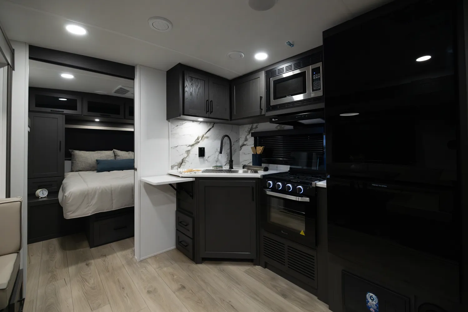 • Platinum Package: Auto Leveling, Frameless Windows, 1800W Inverter, MORryde Strut Assist Entry Step, Dual 30 LP Tanks