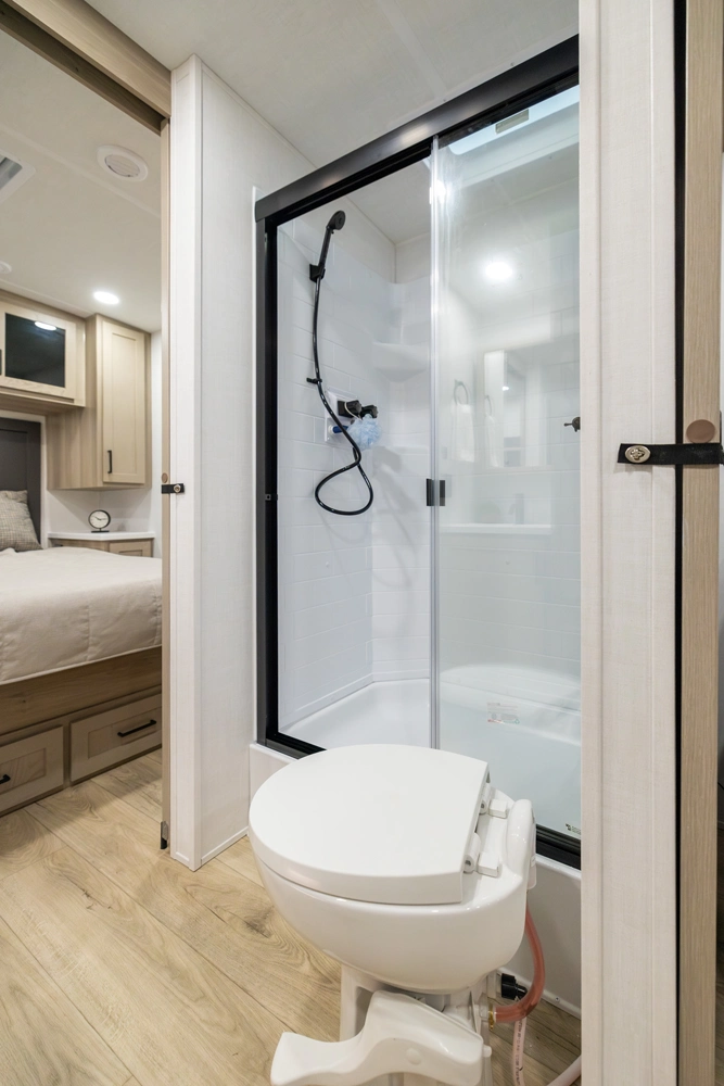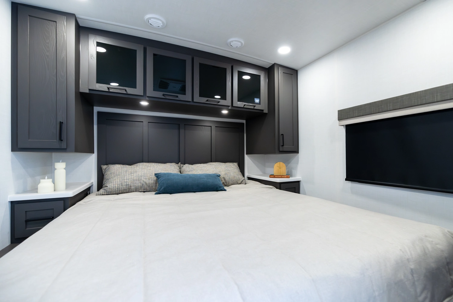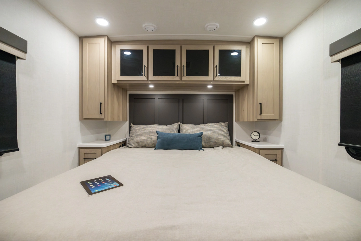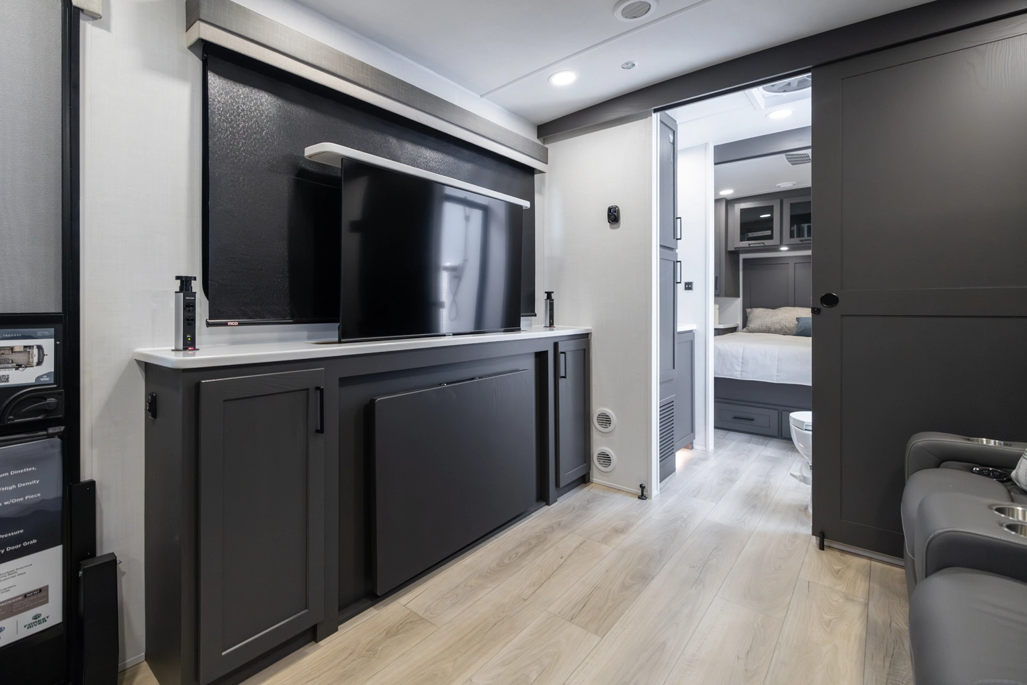 • Platinum Package: Auto Leveling, Frameless Windows, 1800W Inverter, MORryde Strut Assist Entry Step, Dual 30 LP Tanks