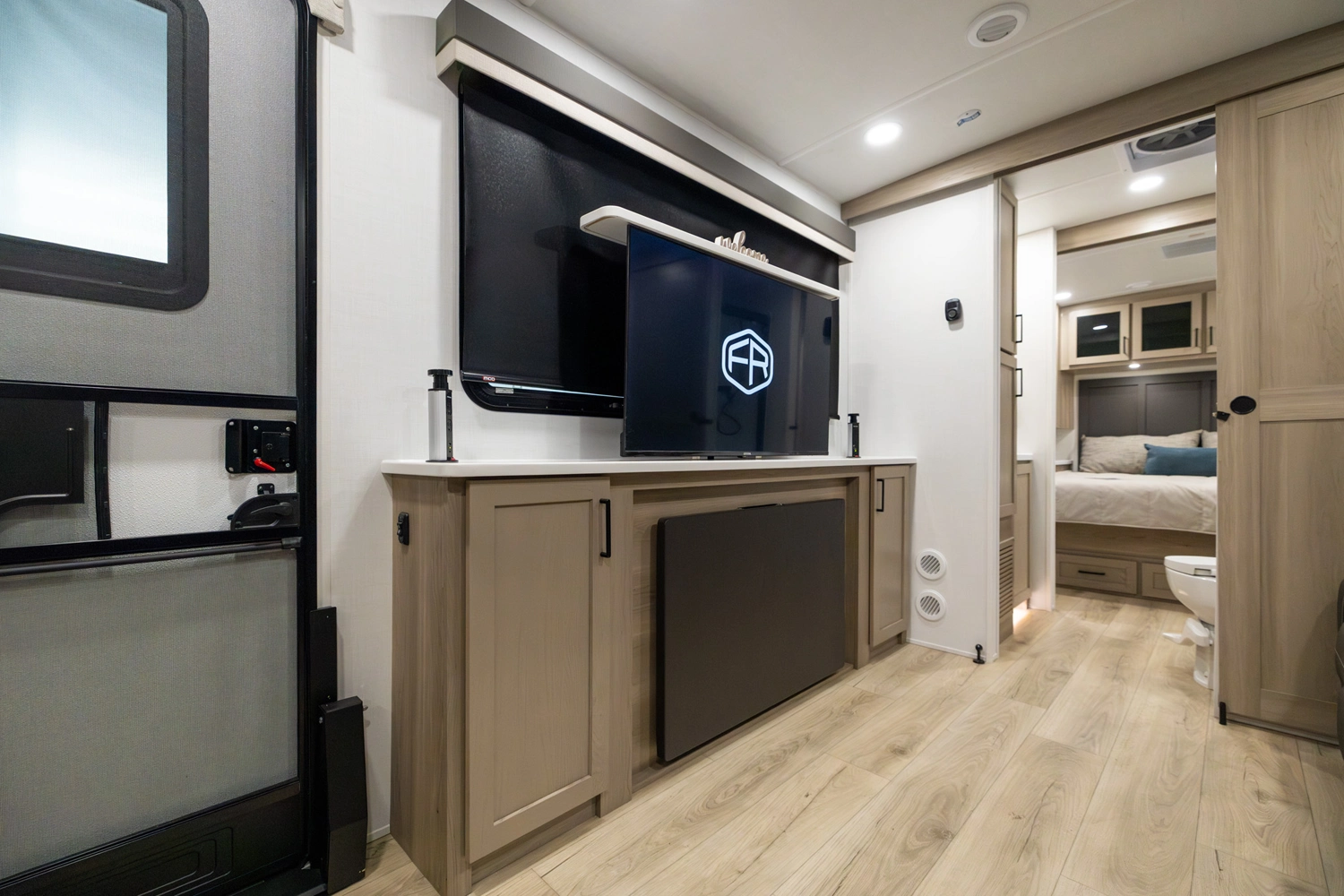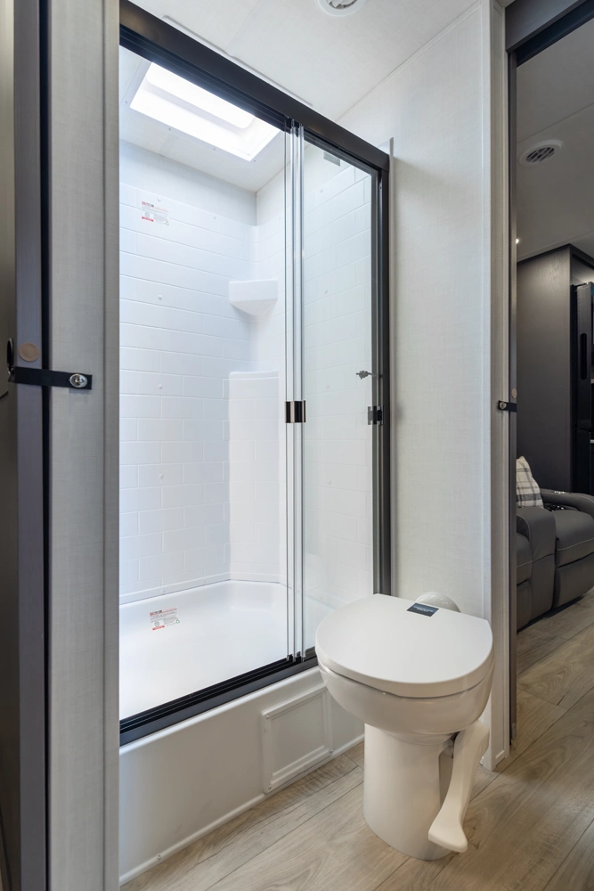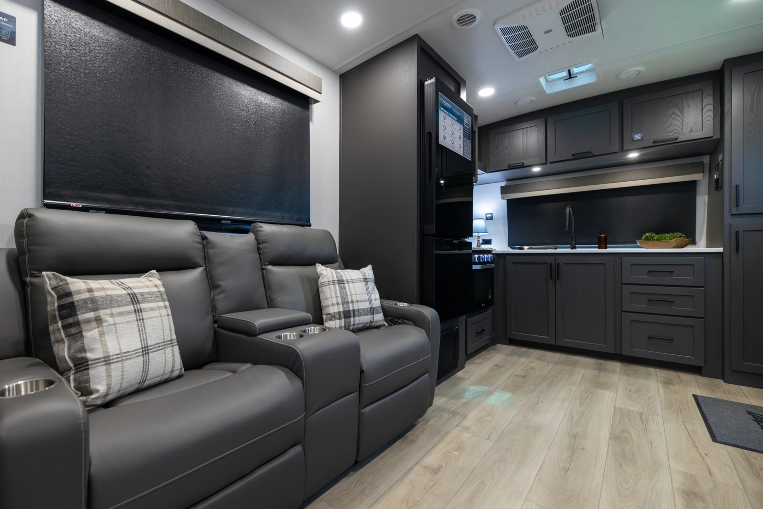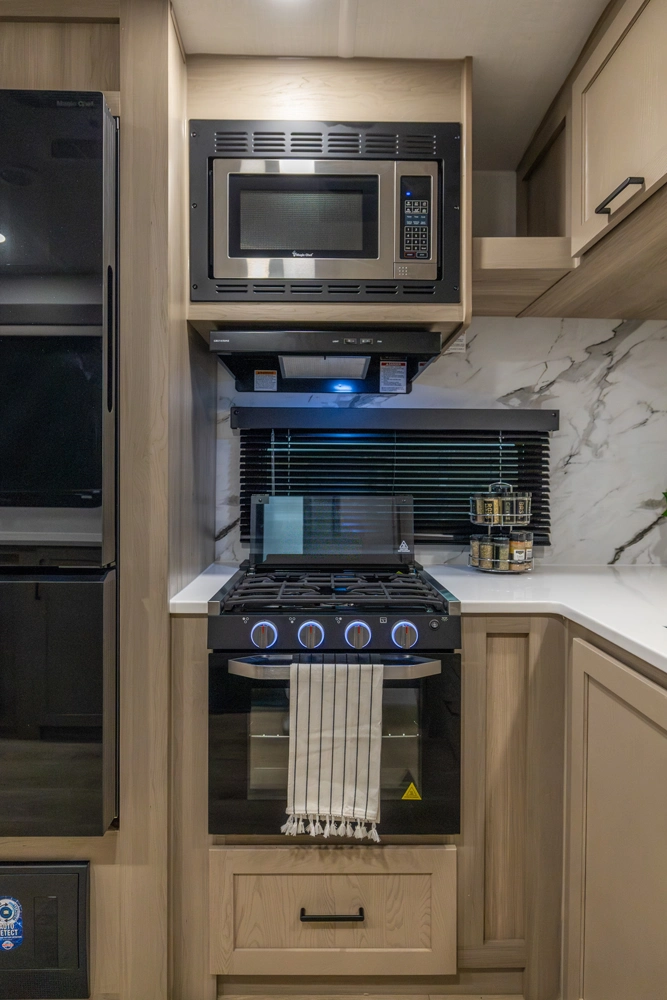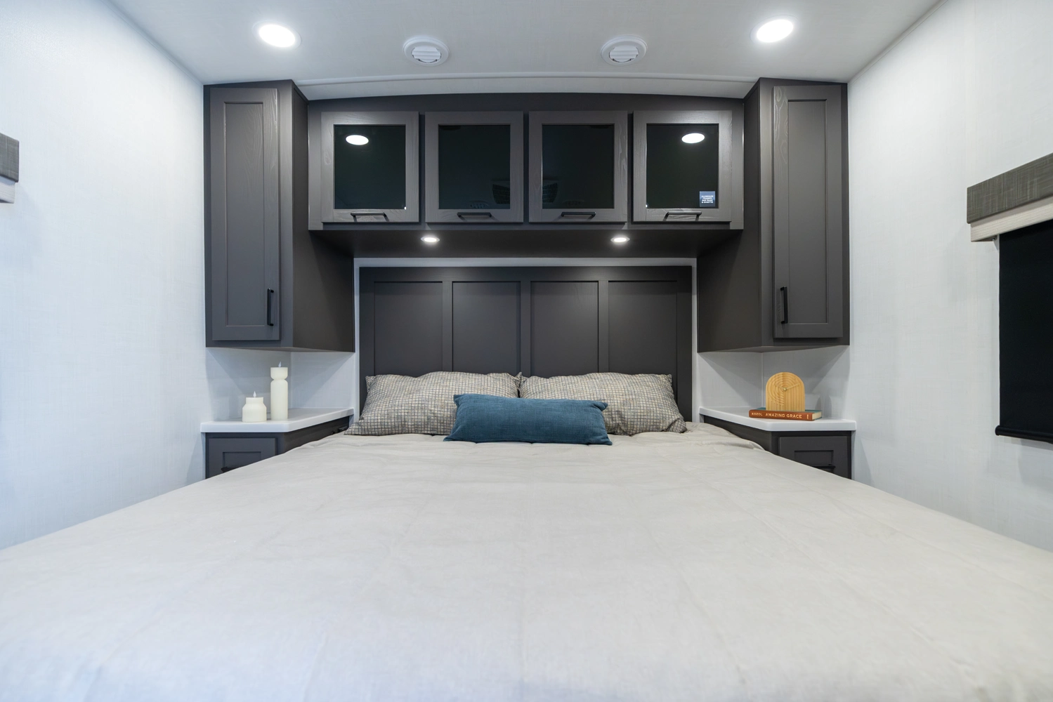 • Platinum Package: Auto Leveling, Frameless Windows, 1800W Inverter, MORryde Strut Assist Entry Step, Dual 30 LP Tanks
