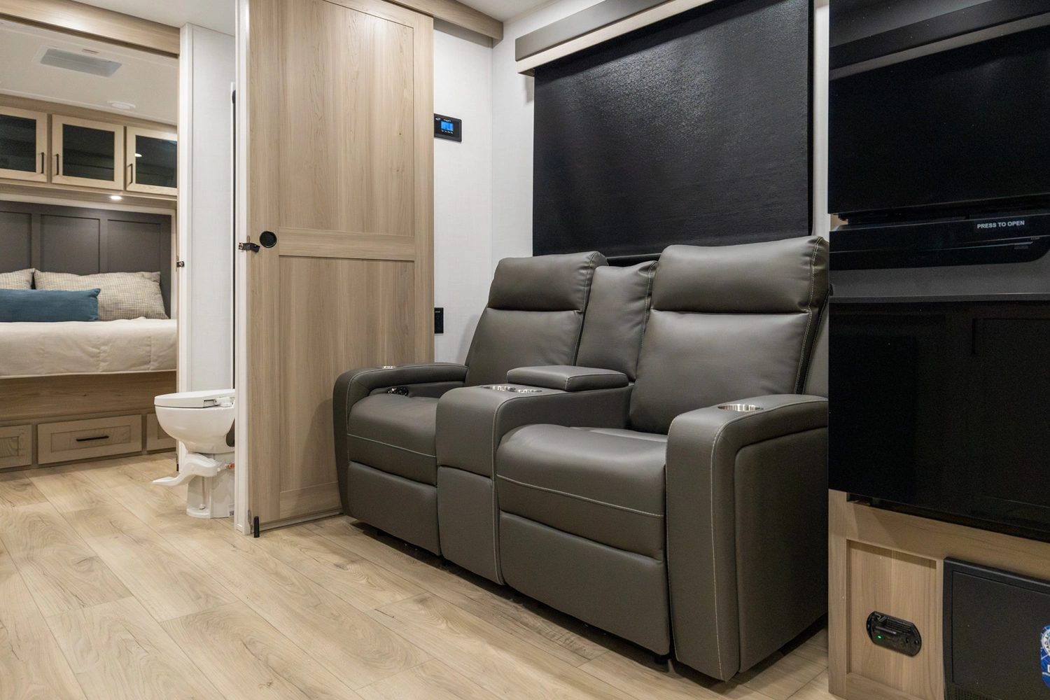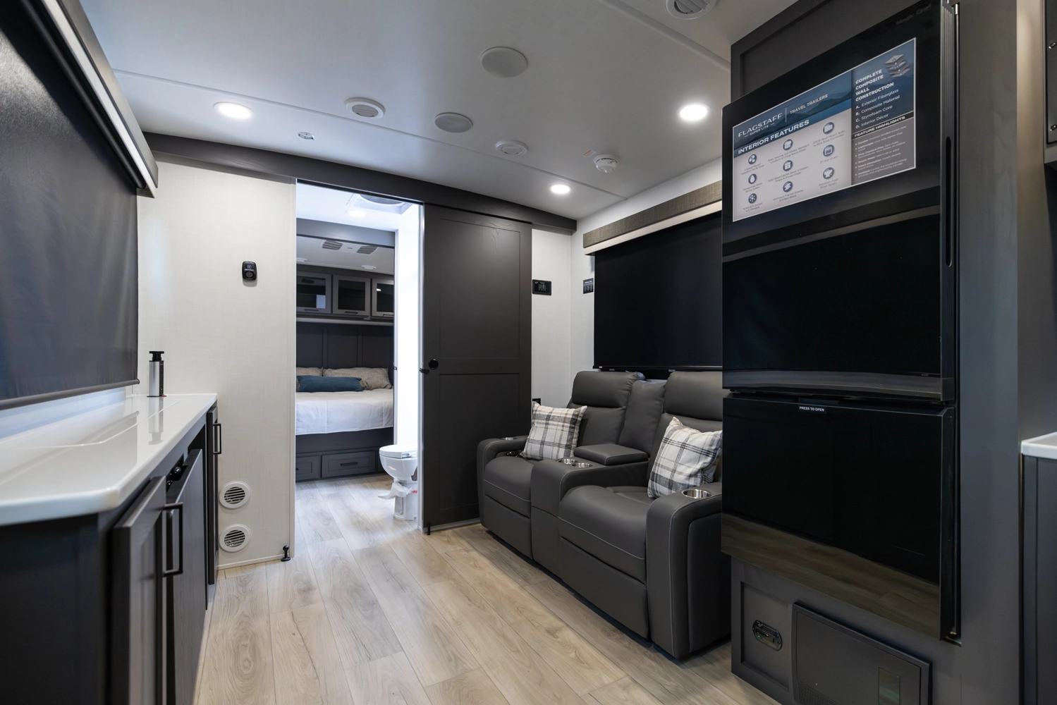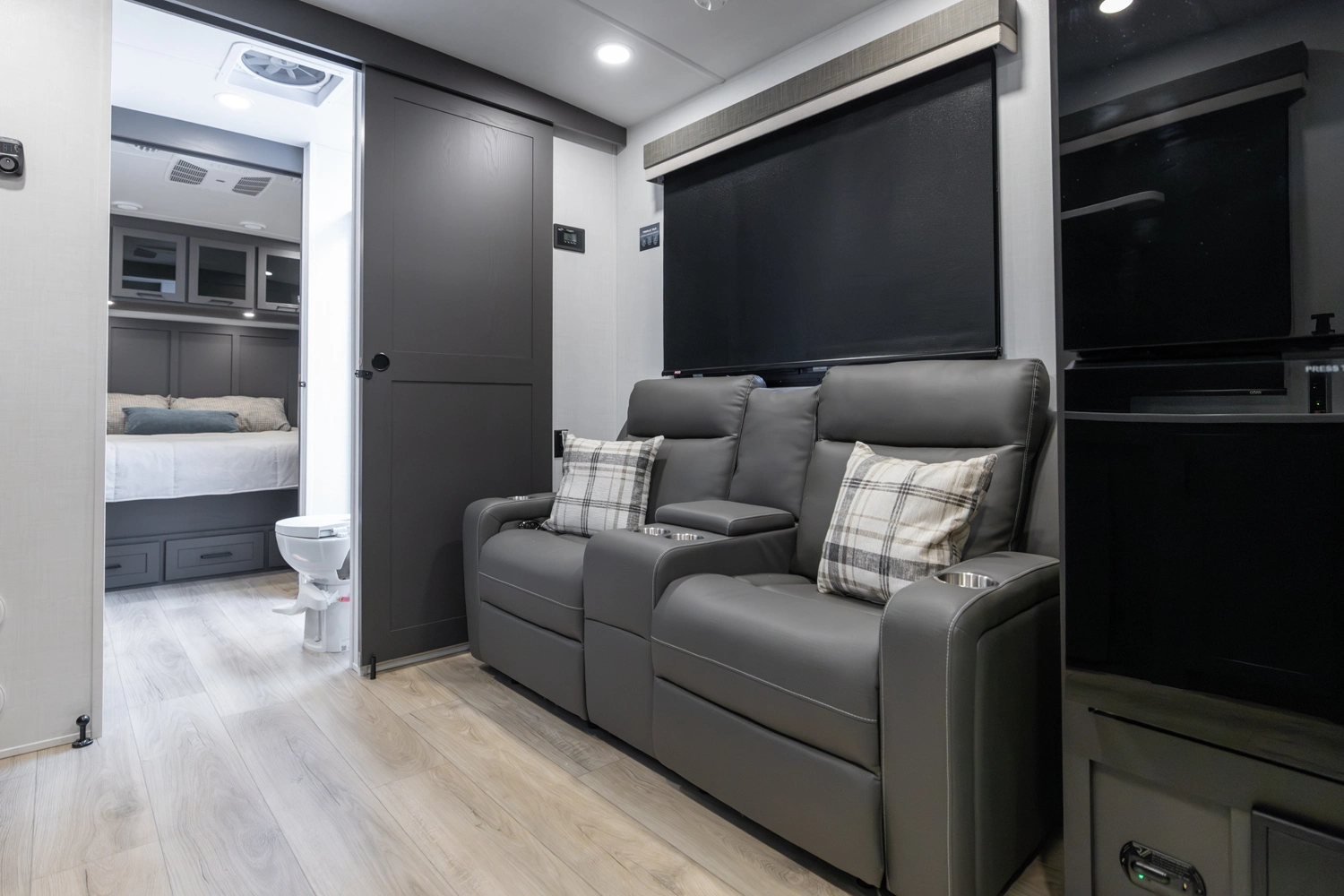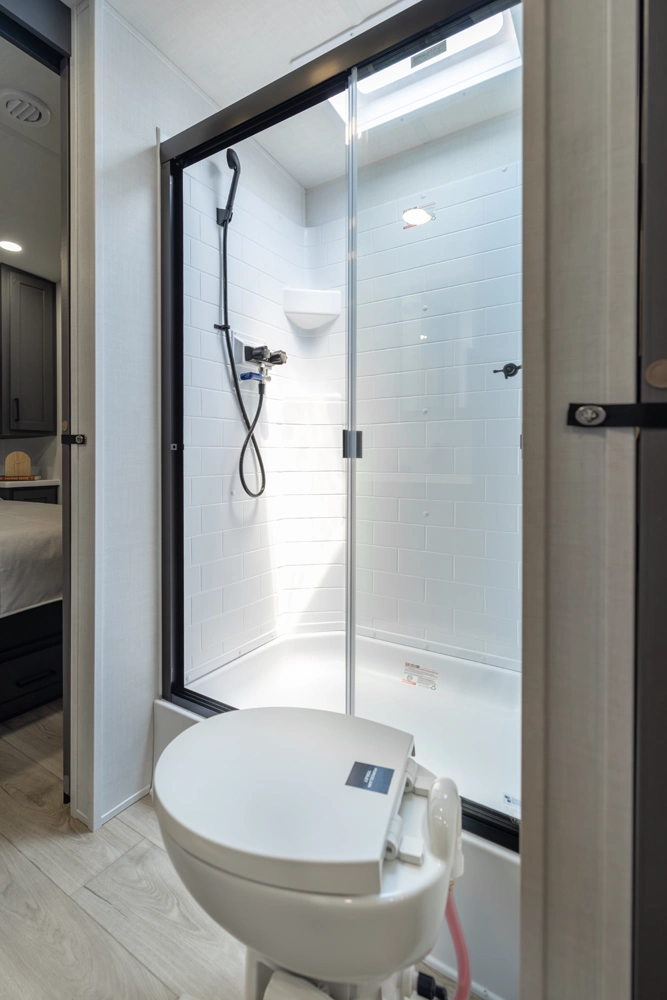 • Platinum Package: Auto Leveling, Frameless Windows, 1800W Inverter, MORryde Strut Assist Entry Step, Dual 30 LP Tanks