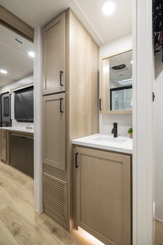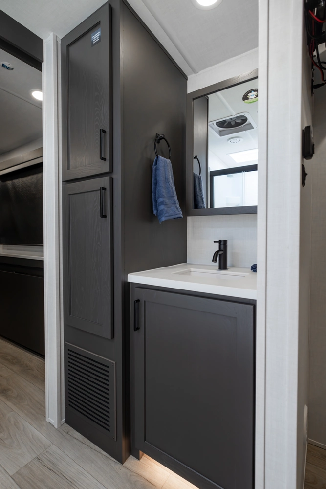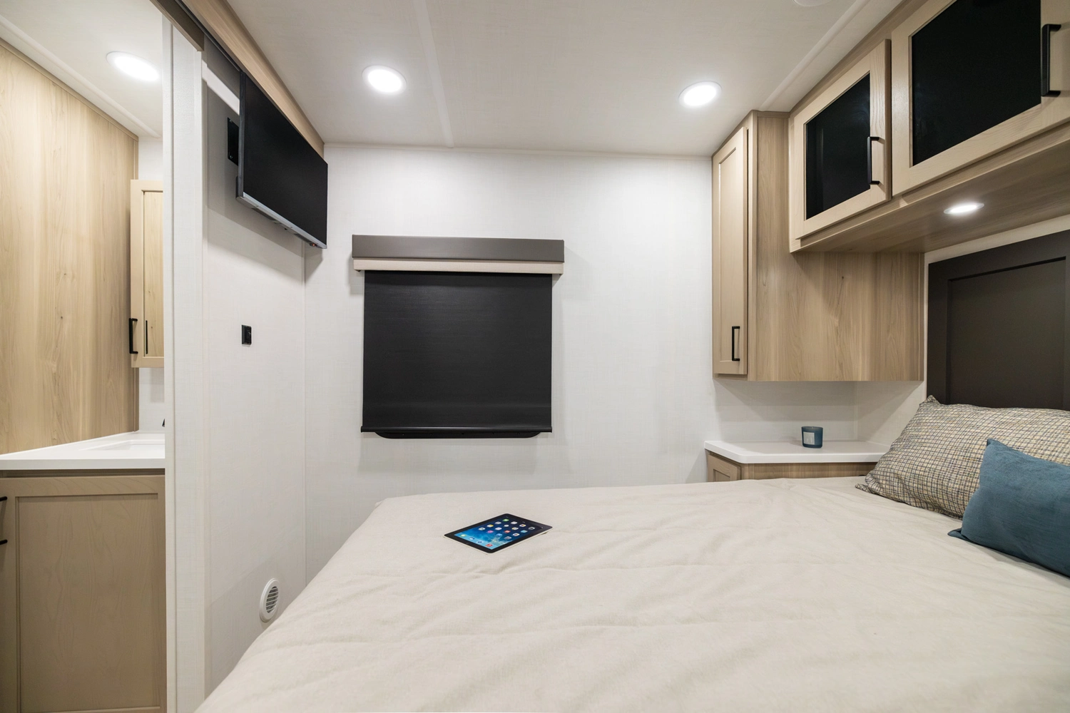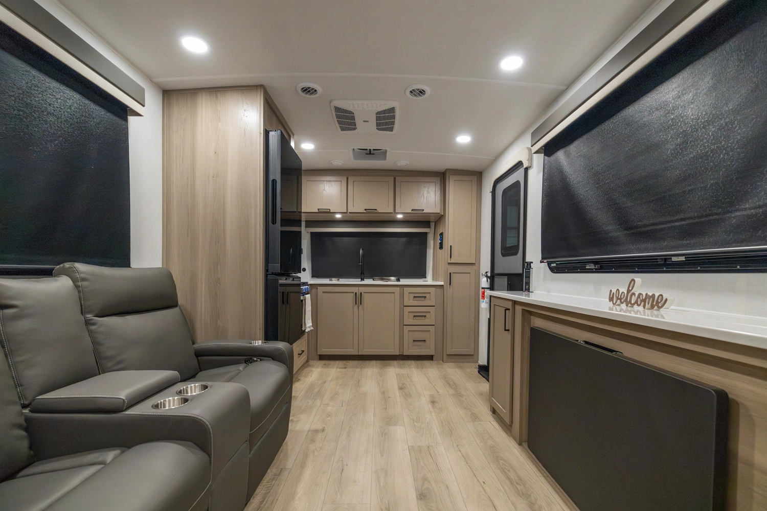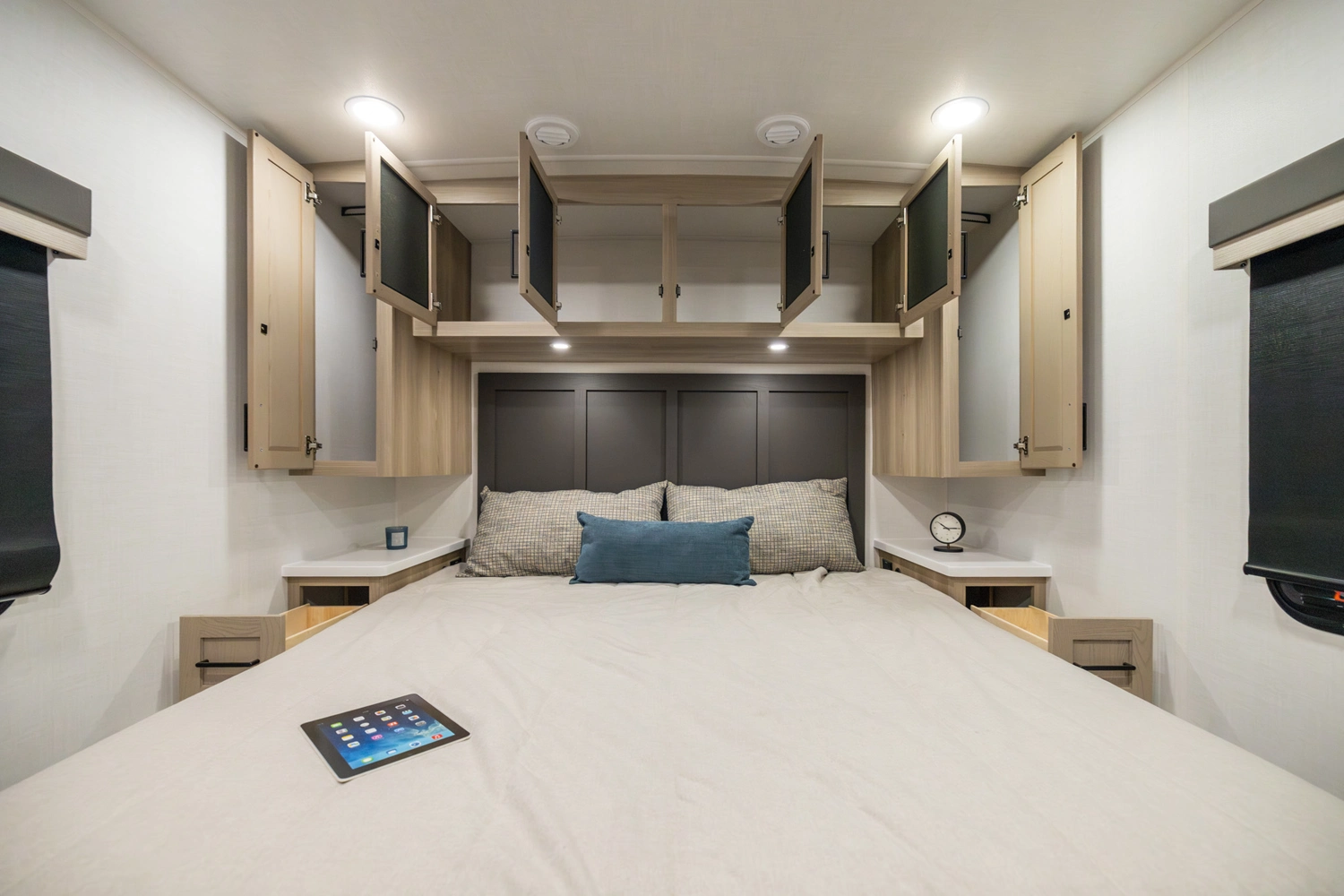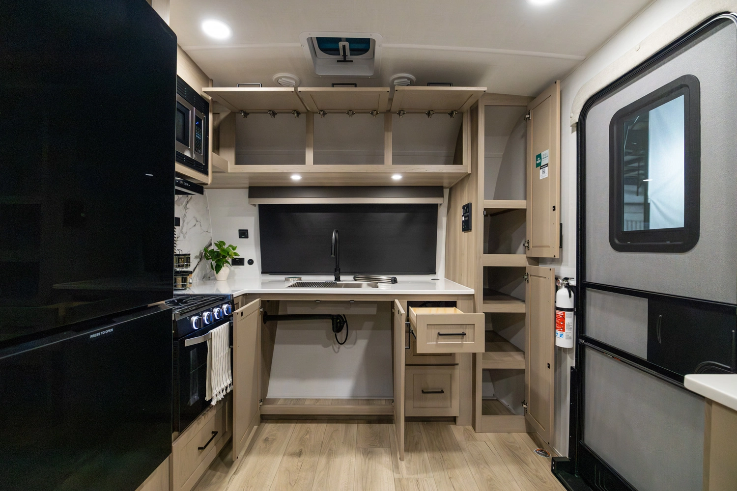 A slide-free travel trailer built for true campsite accessibility and effortless towing! With no slides to worry about, the setup is quick, easy and simple. The front kitchen offers abundant counter space and great workflow while the central living area provides comfort and function. A private bedroom, well-appointed bath, and thoughtful storage make this rugged yet refined coach perfect for adventurers who value simplicity without sacrificing comfort!