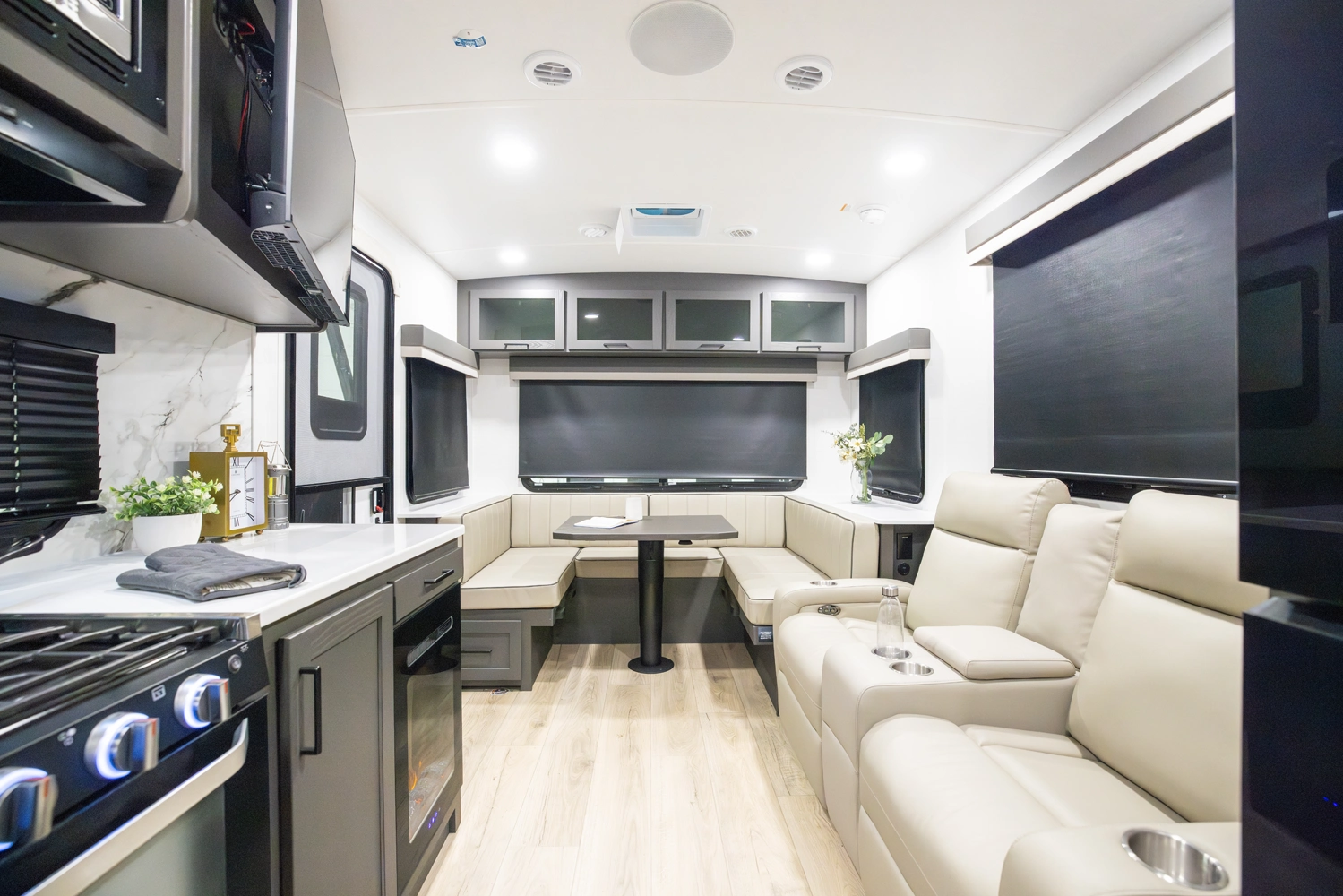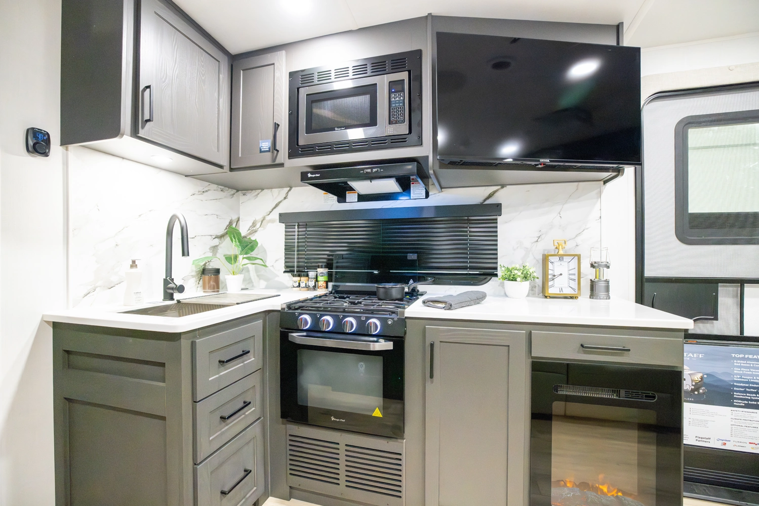 The Flagstaff 30RDT is another exciting addition to our traveler series. No slides-No headaches. This floorplan is designed for maximum campsite accessibility and quick, hassle-free setup. With no slides, you can park and relax in minutes, making it perfect for tighter sights and off grid adventures. Inside, enjoy a large functional kitchen, comfortable living space, private bedroom, and versatile sleeping options. Simple, efficient, and adventure-ready the 30RDT keeps travel easy & enjoyable.