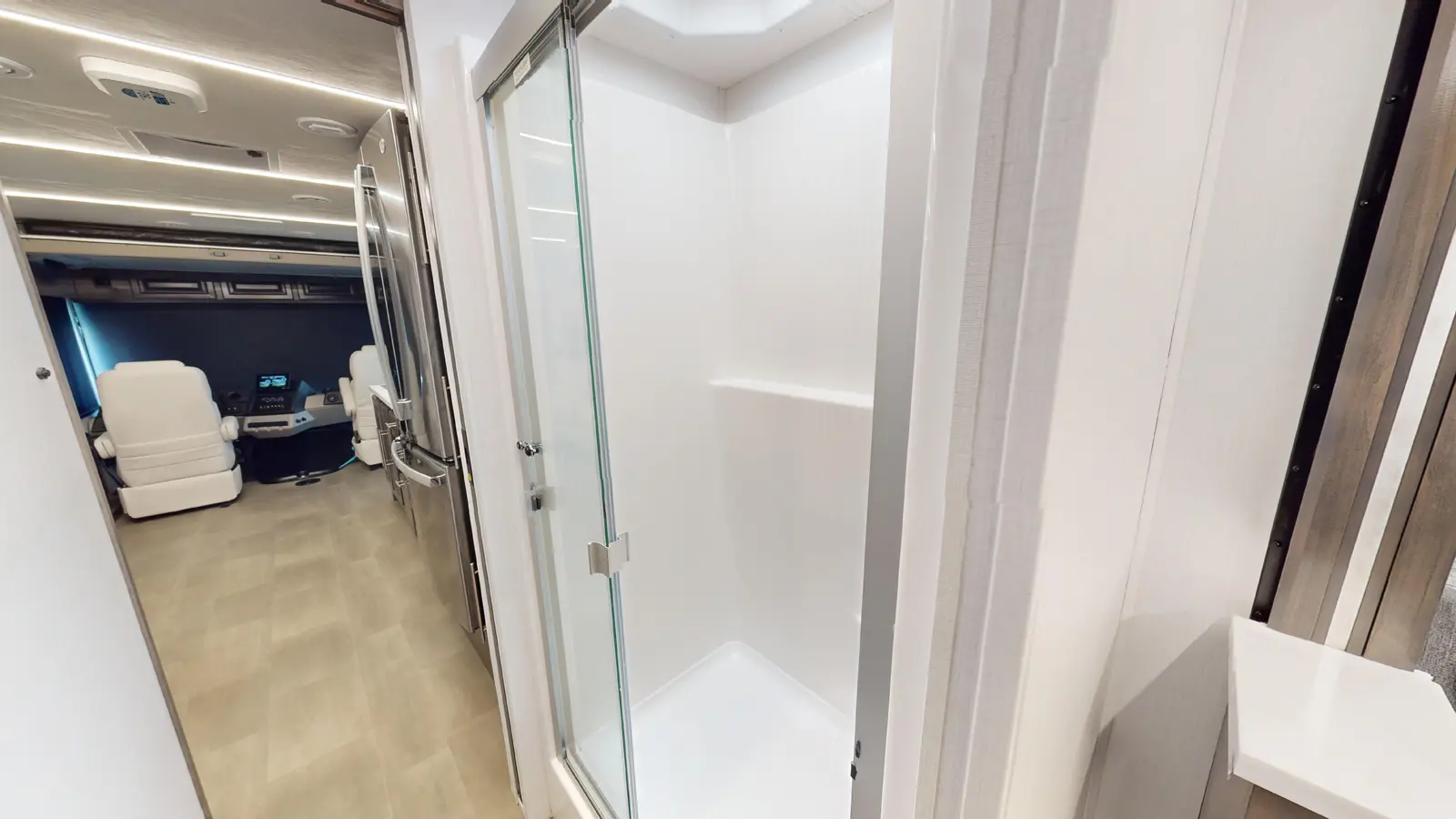 Our Georgetown 31X7 by Forest River is perfect for travelers looking for a compact and easy to drive motorhome coming in at 33ft 11in. The bedroom makes no sacrifices with a king size bed slide, washer/dryer prep and lots of wardrobe space. You also still get a full bathroom with the shower split making it convenient for your partner to shower while you get ready by the sink. There's also plenty of seating up front for guests and the dinette converts into a bed for occasional guests!