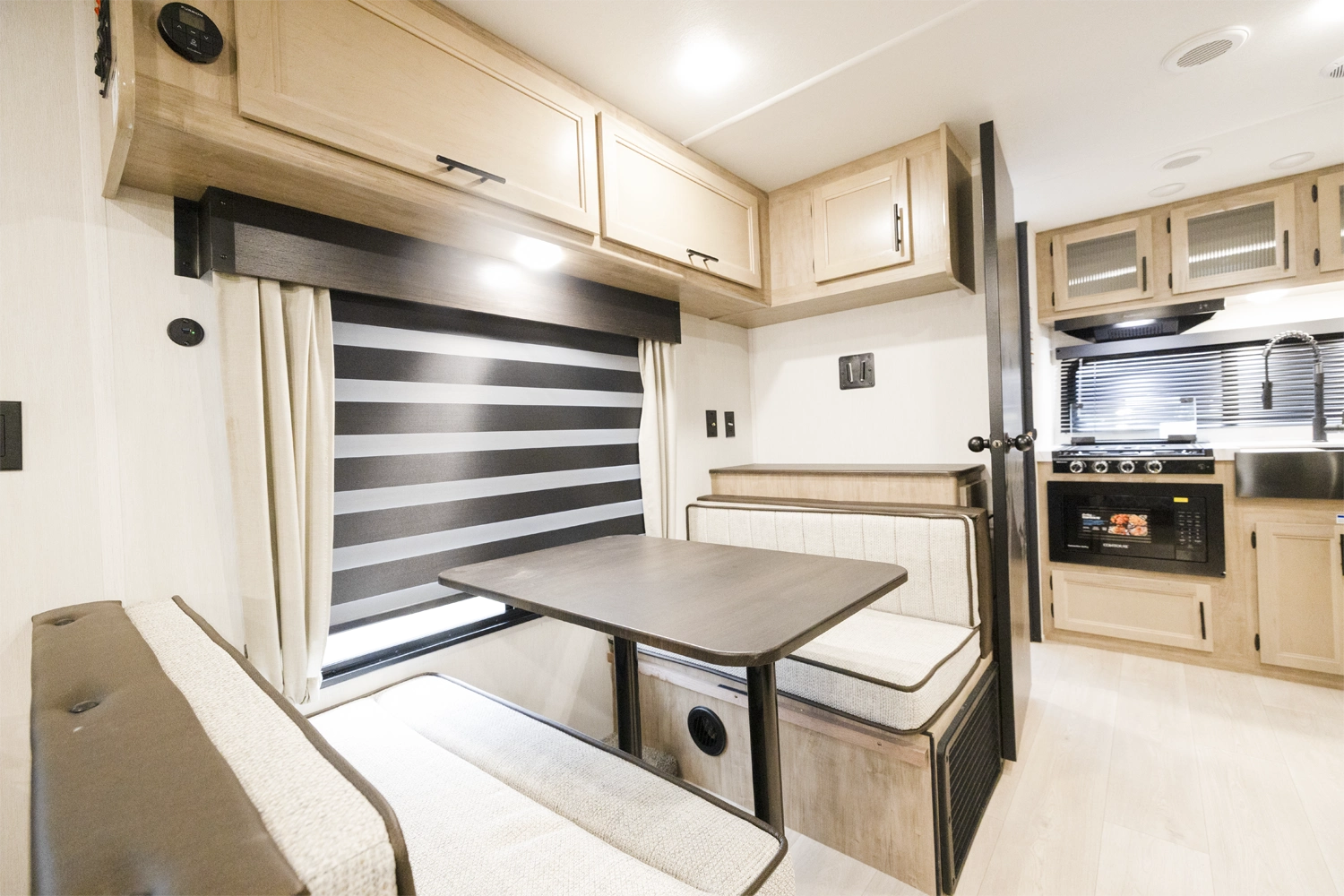 The Grey Wolf 22CE by Forest River is a stylish and functional travel trailer. Its open-concept design, featuring a bedroom, living room, and kitchen seamlessly blended together, maximizes space and creates a spacious feel. The 22CE offers a full bathroom, a large pantry, a 12-volt refrigerator, an air fryer combo microwave, and a king-size bed for ultimate comfort. The convertible dinette and sofa provide additional sleeping options, making it perfect for family trips or entertaining guests.