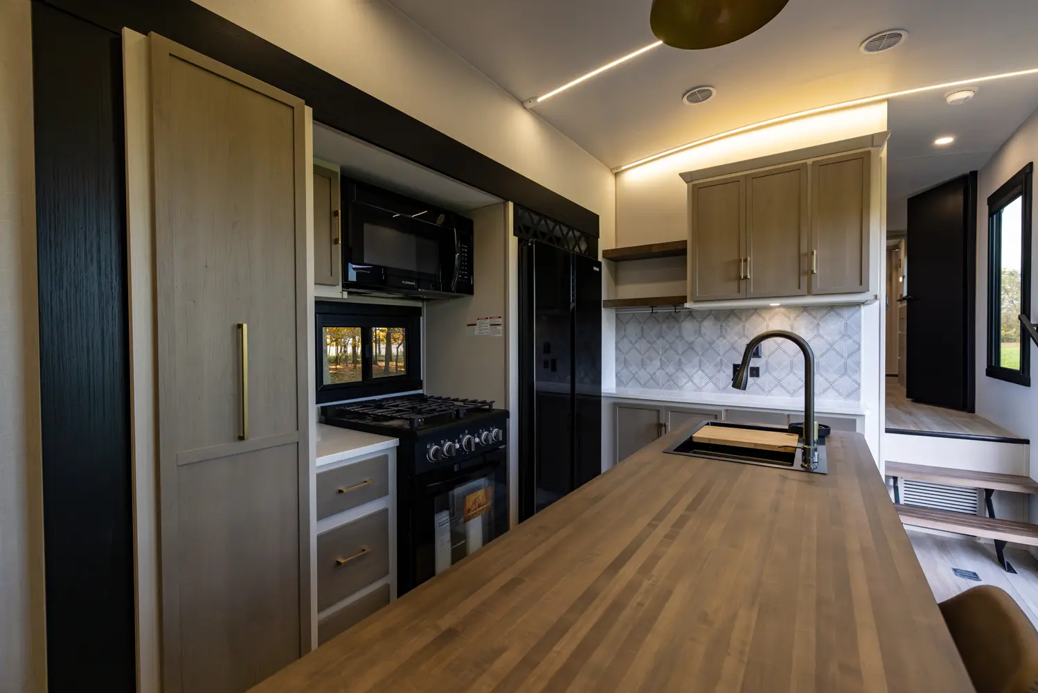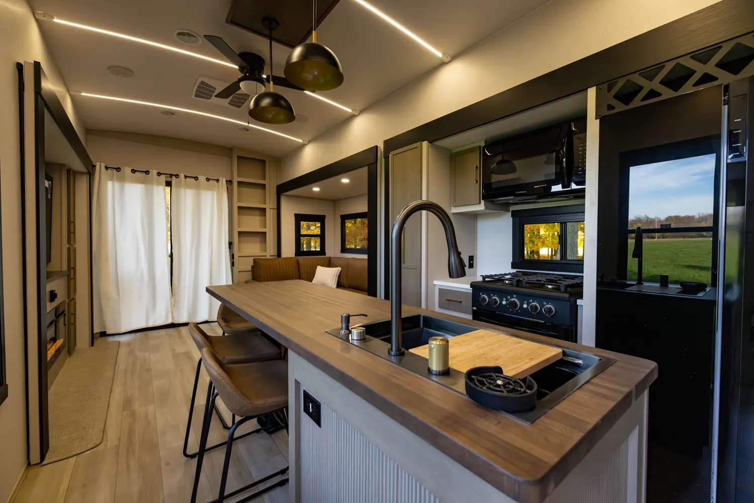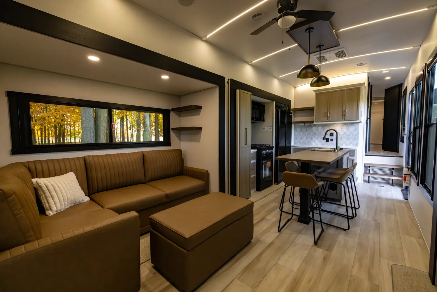 The Hemisphere Fifth Wheels 38VERANDA floorplan has two entries and four slide outs. Exterior features include: fiberglass exterior and 17' awning. Interiors features include: kitchen island and front bedroom.