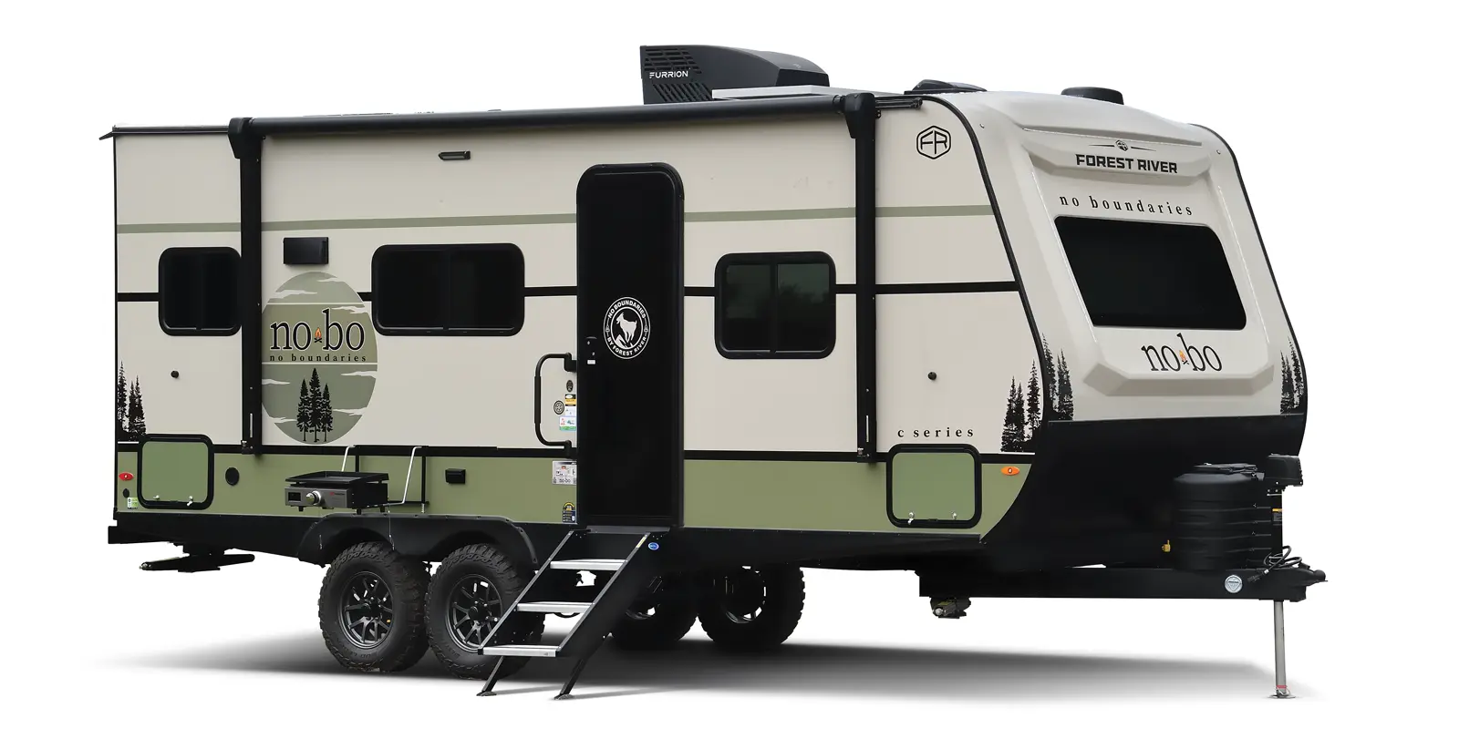 The No Boundaries NB20.1 floorplan has one entry and one slide out. Exterior features include: fiberglass exterior and 14' awning. Interiors features include: murphy bed.