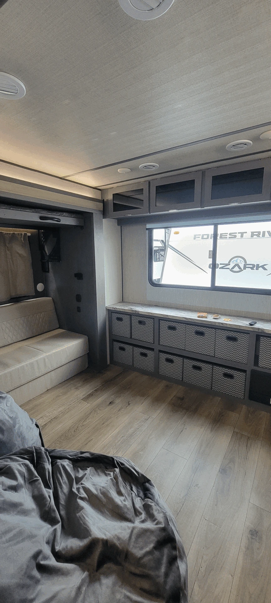The Ozark 3190BHK floorplan has one entry and three slide outs. Exterior features include: fiberglass exterior. Interiors features include: bunk beds and front bedroom.
