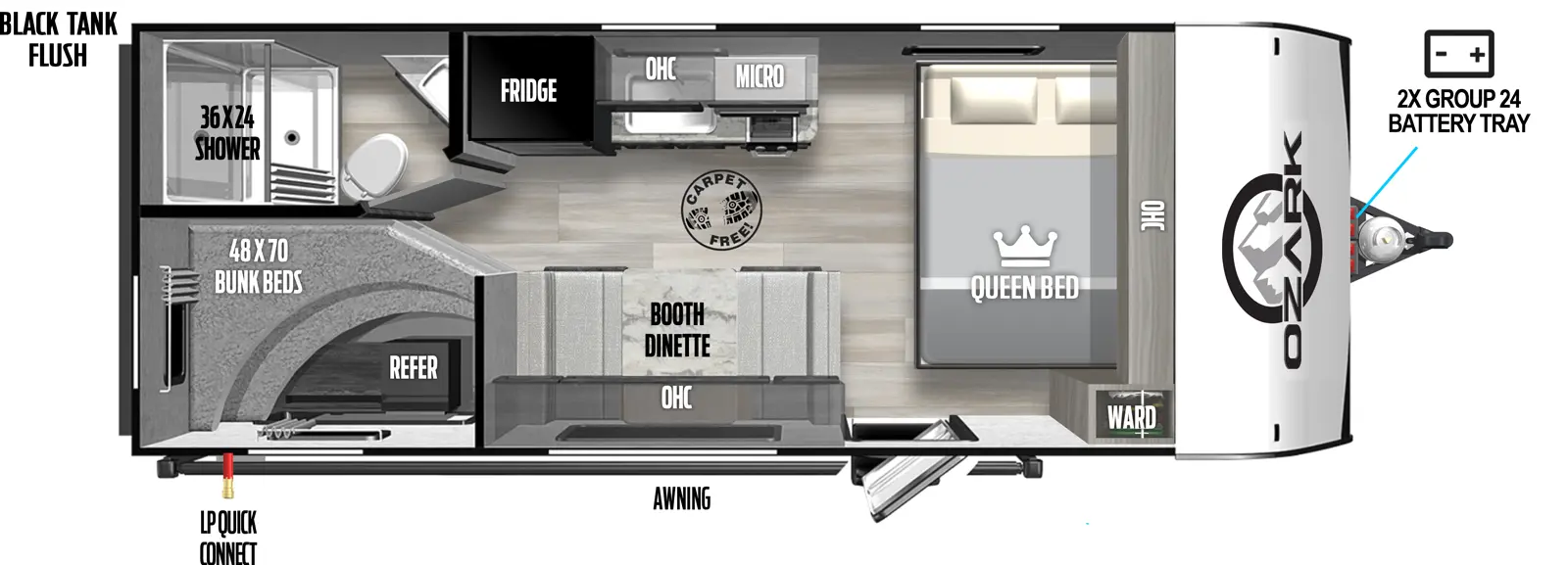 CCC (Cargo Carrying Capacity) ** – is the amount of weight available for fresh potable water, cargo, additional optional equipment and accessories. CCC is equal to GVWR minus UVW. Available CCC should accommodate fresh potable water (8.3 lbs per gallon). Before filling the fresh water tank, empty the black and gray tanks to provide for more cargo capacity.