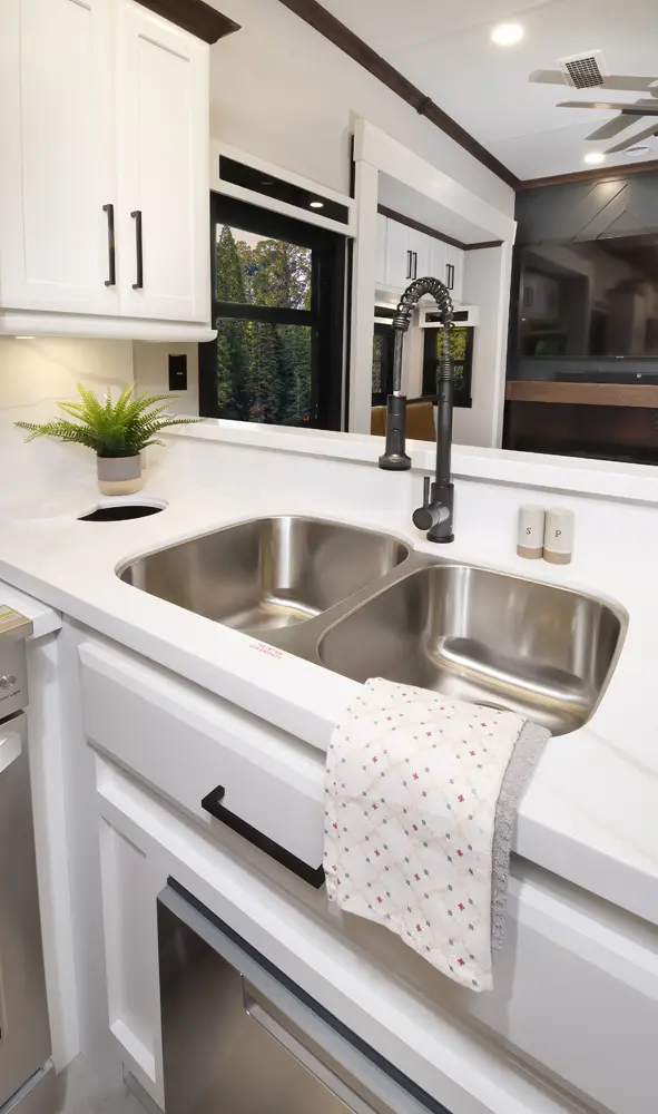 • Large Stainless Steel Kitchen Sinks with Residential-Style Faucet