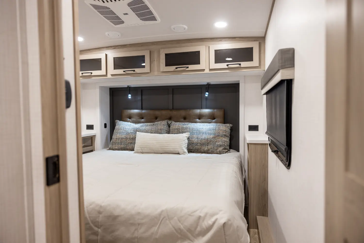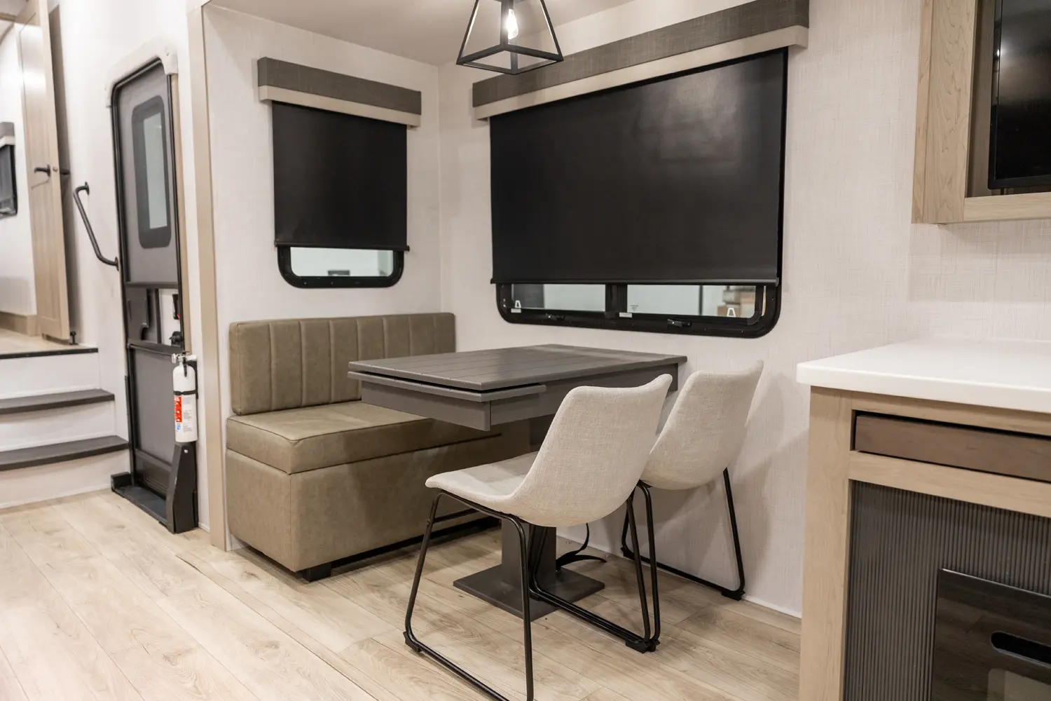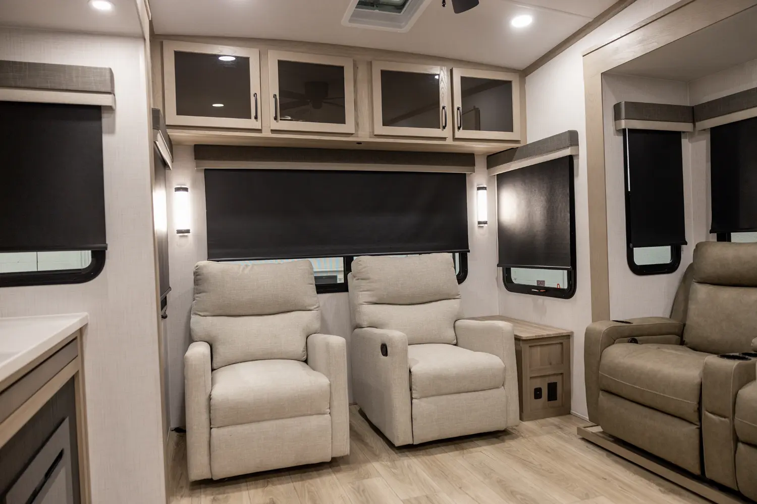 The Rockwood Signature Fifth Wheels R331RL floorplan has one entry and two slide outs. Exterior features include: fiberglass exterior and 10' & 15' awning. Interiors features include: kitchen island, front bedroom and rear living.
