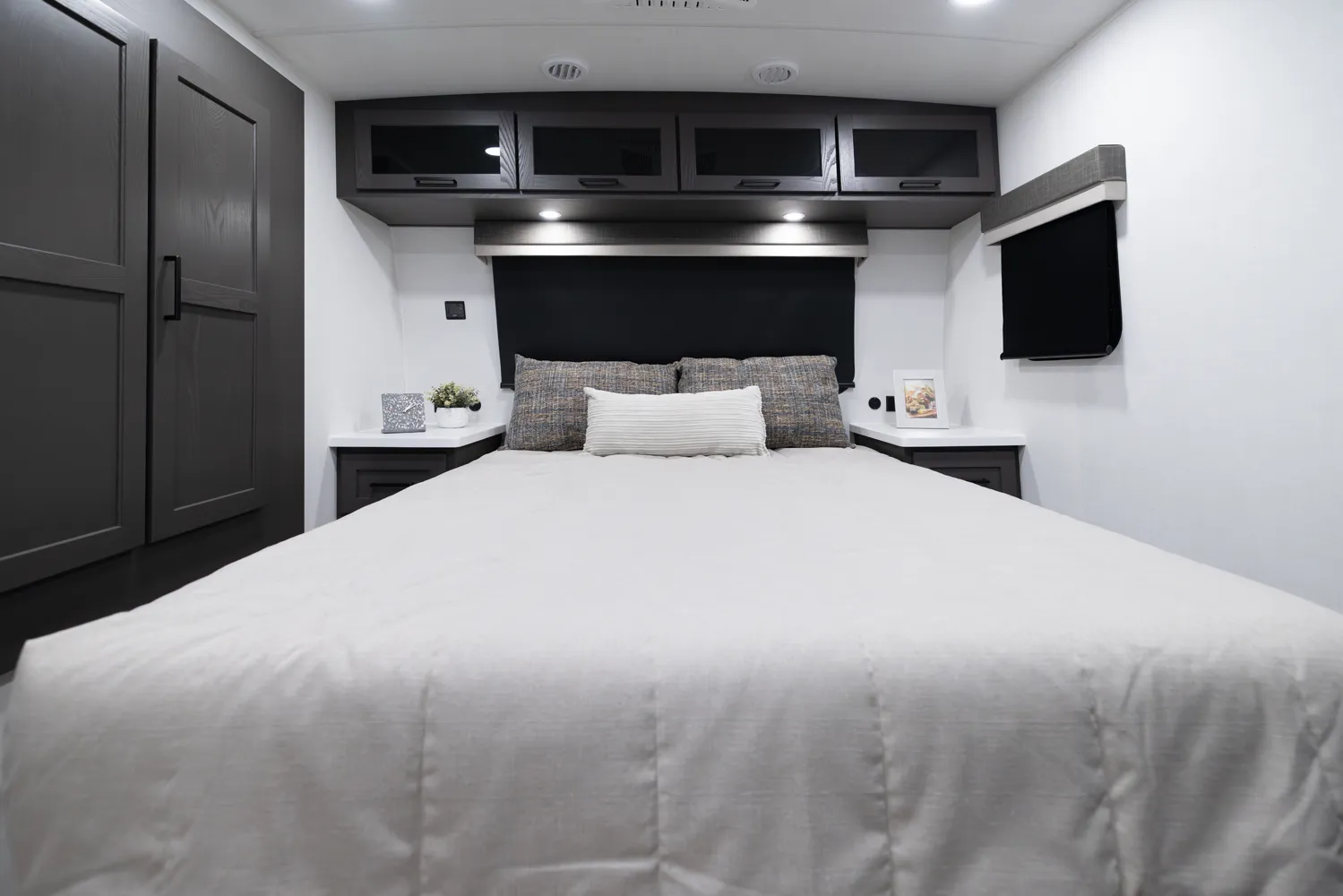 • Platinum Package: Auto Leveling, Frameless Windows, 1800W Inverter, MORryde Strut Assist Entry Step, Dual 30 LP Tanks