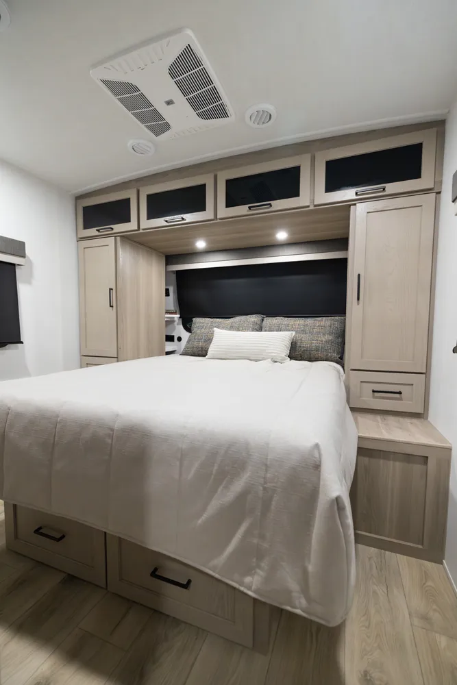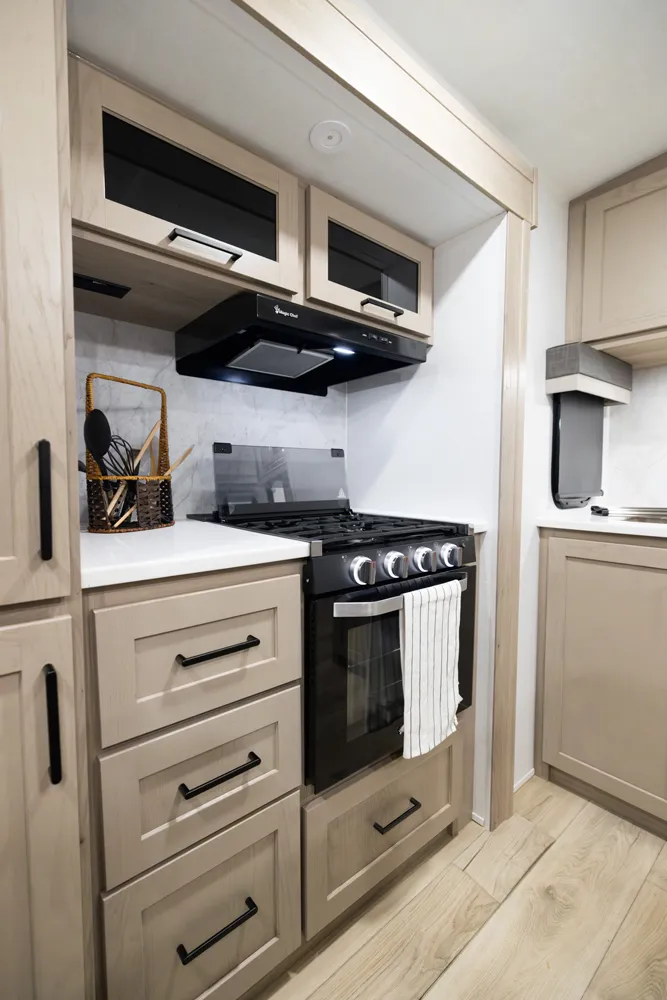 • Platinum Package: Auto Leveling, Frameless Windows, 1800W Inverter, MORryde Strut Assist Entry Step, Dual 30 LP Tanks