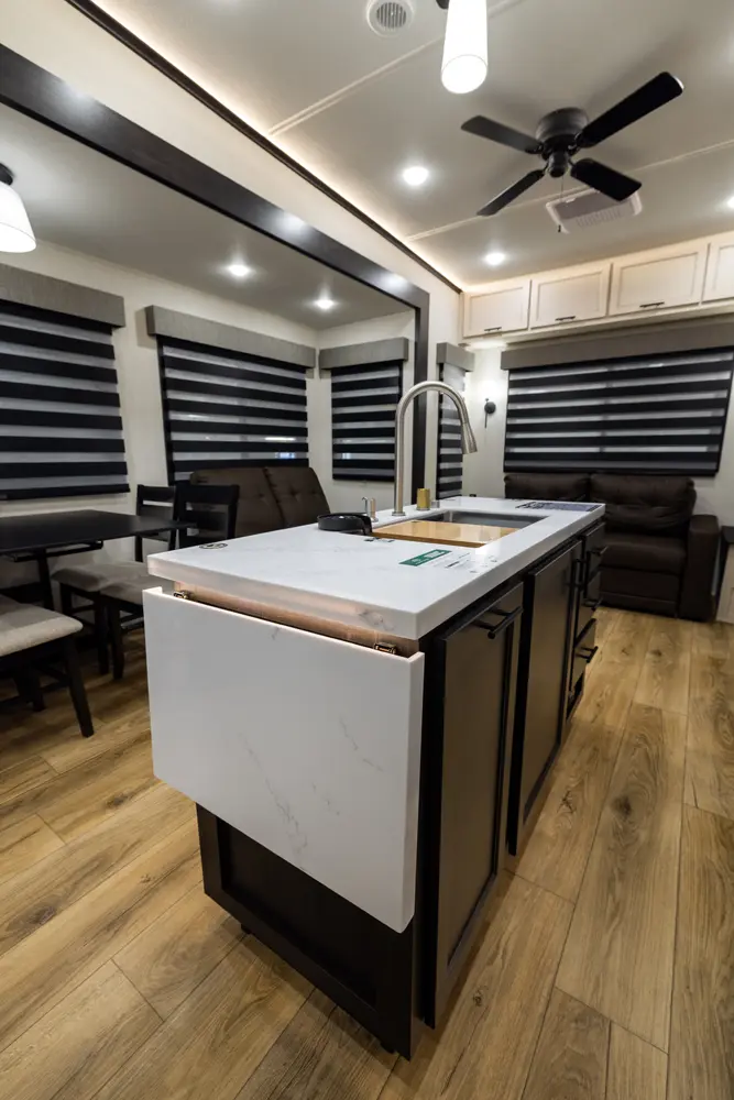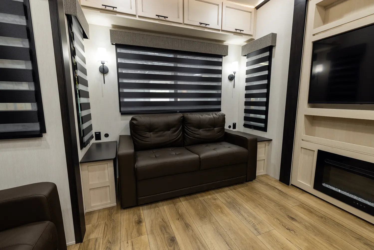 Experience the perfect blend of space and style with the Sabre 32GKS by Forest River. This 35-foot 5th wheel RV features a stunning rear living room bathed in natural light from large windows, offering breathtaking views of your campsite. The impressive chef’s kitchen is a dream come true, while the spacious main suite provides a serene retreat. Discover the ultimate in RV living with the Sabre 32GKS.