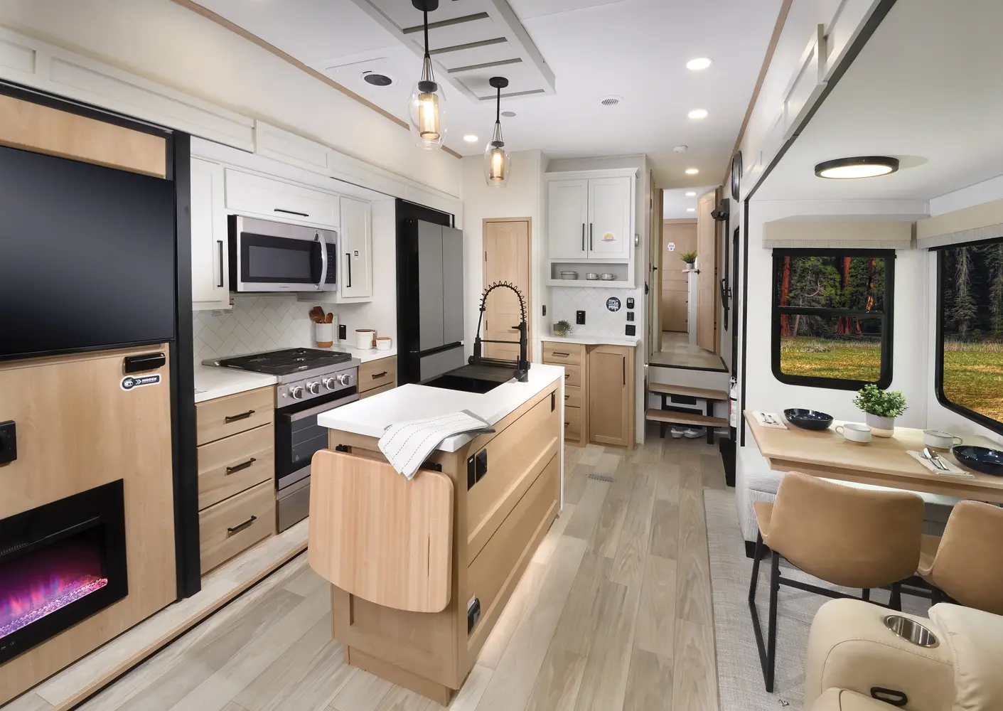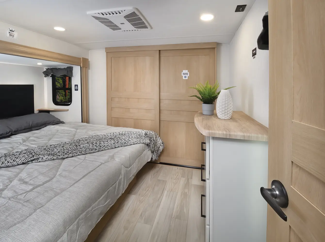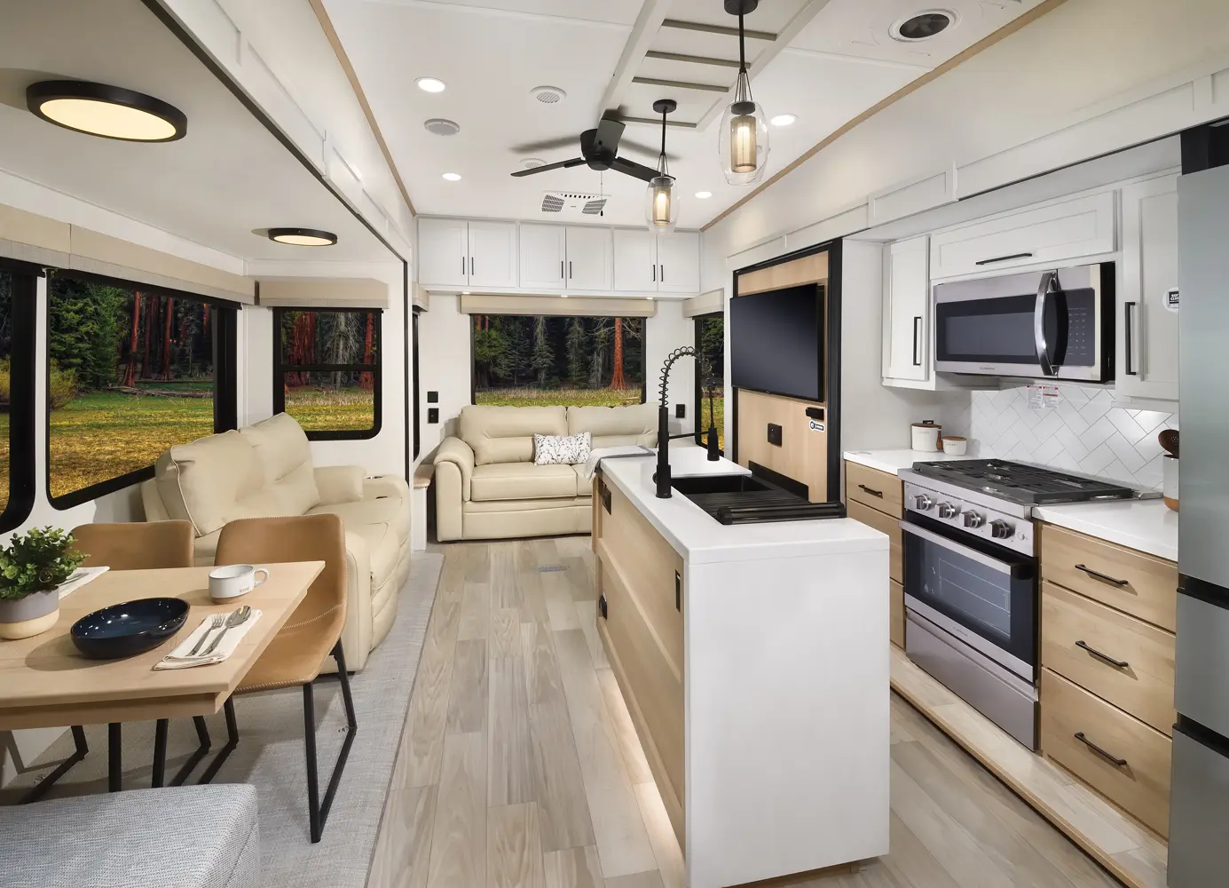 The traditional rear living floor plan, maximized for your needs. A king bed on a slide, washer dryer prep, and walk in closet ensure that you have everything you need for the weekend, or for that long journey. This floorplan is perfect for couples looking to hit the road, or enjoy a weekend around home.
