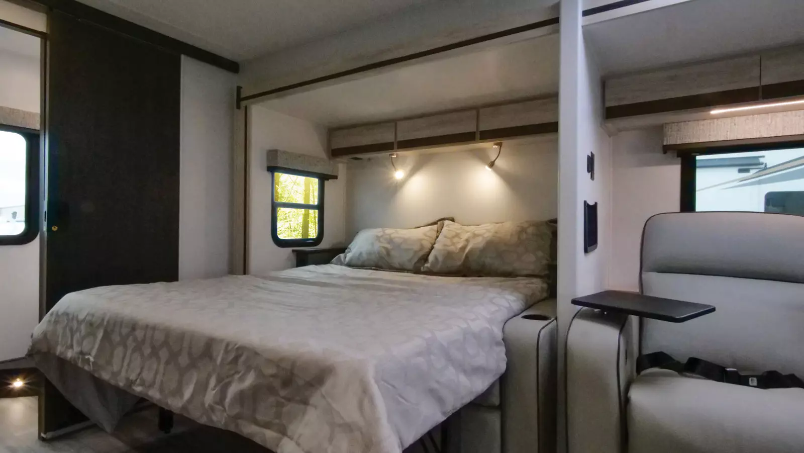 Sunseeker PM (Dodge ProMaster Chassis): Smart, versatile design for maximum space. This compact model, built on a powerful Dodge chassis, features an innovative Euro Power lift bed to optimize your living area while still providing a full bathroom and kitchen.