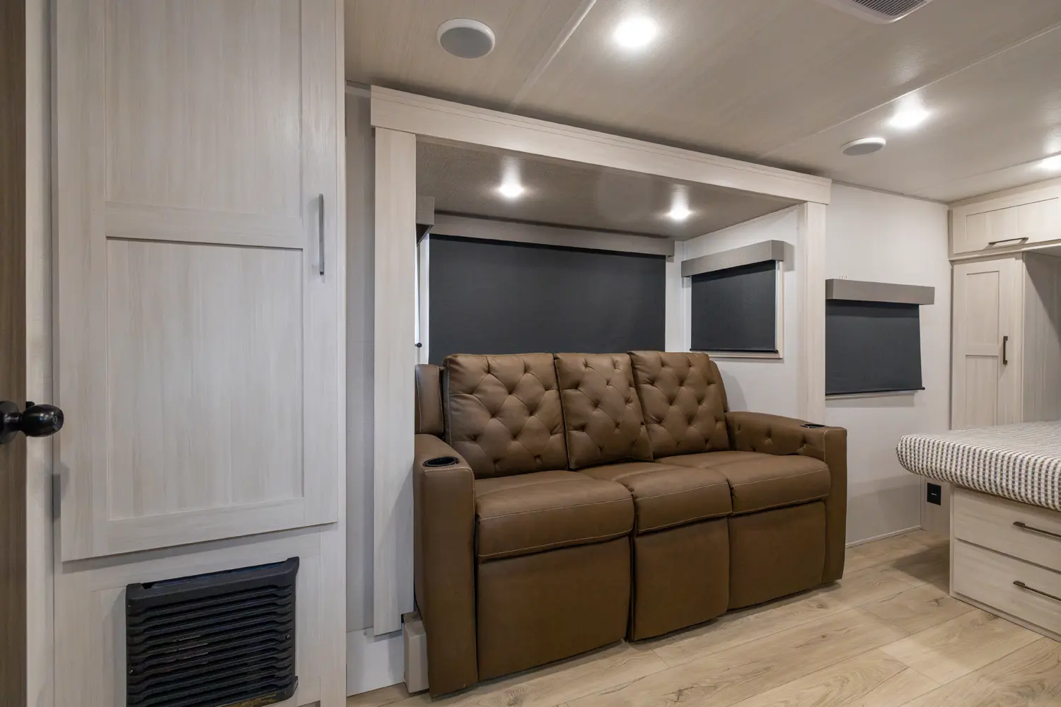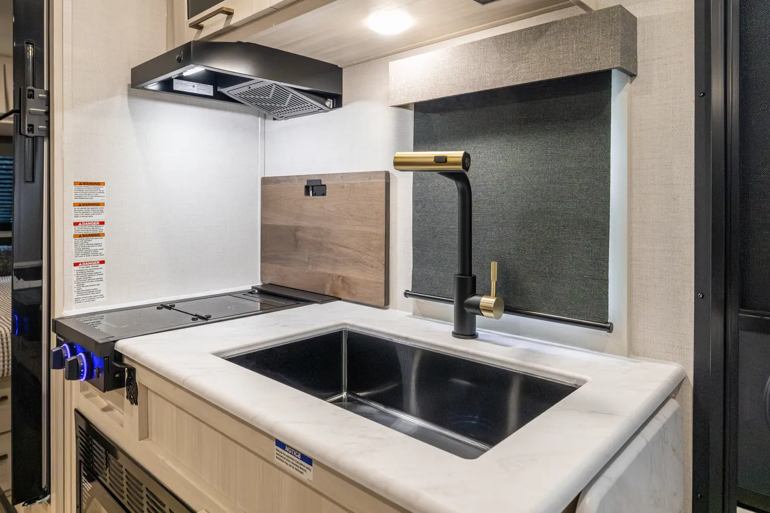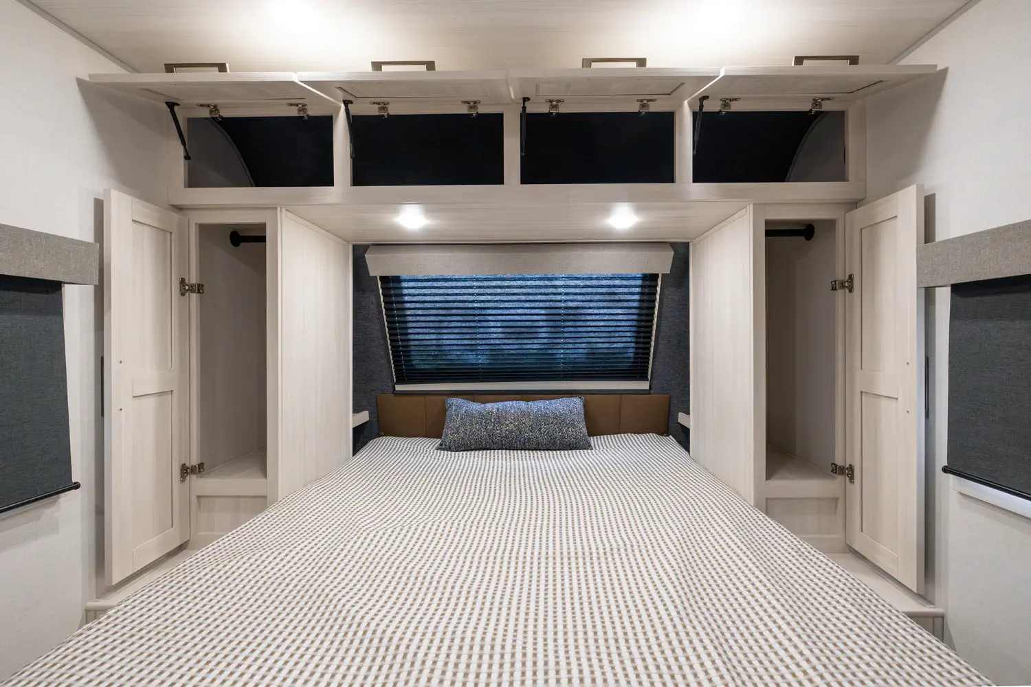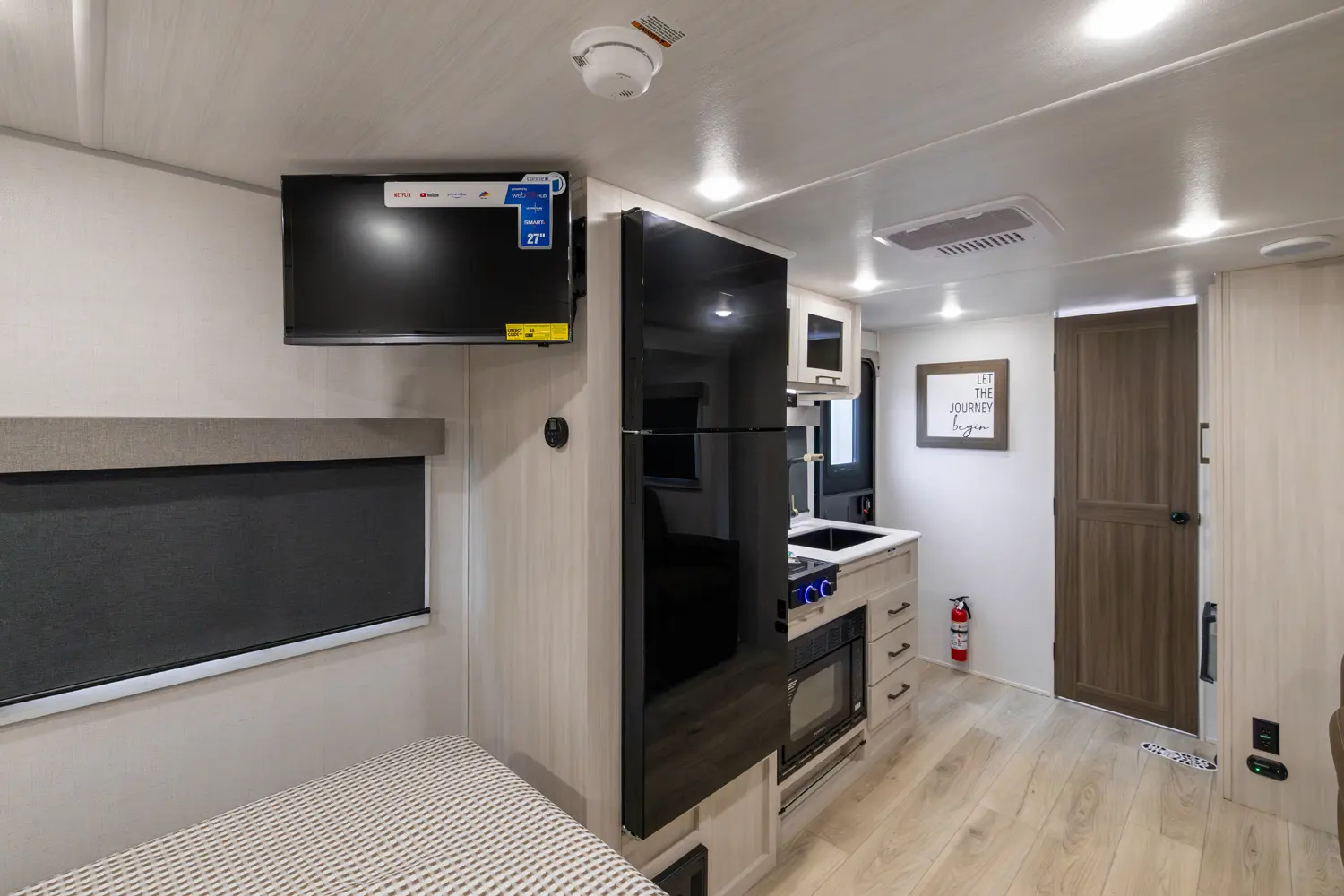 Sleeps up to 4. Need tow vehicle rated at 4300 lbs. or more. The 19RBLE is Adventure Ready! - Our most nimble couple’s model made for new and seasoned RVers alike features; a big rear washroom with extra wardrobe, large kitchen pantry, deep dinette slide-out with storage doors, versatile convection microwave oven, sizable 15’ hang outside all day awning, and our renowned queen bedroom suite configuration! Newly Added our Sub 4s Outside Kitchen; griddle, prep shelf, & spray port!