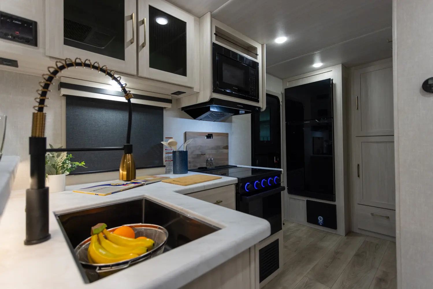 Sleeps up to 4. Need tow vehicle rated at 5400 lbs. or more. Sustainable for short and long trips, this model breaks the horizon with cool concepts in a trailer under 25’. Featuring standard dinette that can be optioned out for our Exclusive TSS. You’ll love the breakfast bar with high seating stools for extra seating. The washroom upgraded with 30x36 shower, slow close shower door, and linen cubbies. To cap it off we added our outside kitchen; griddle, sink, refrigerator, and spray port.