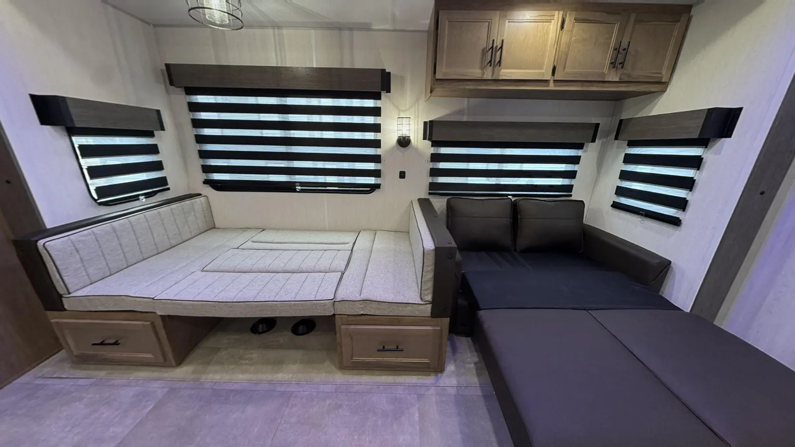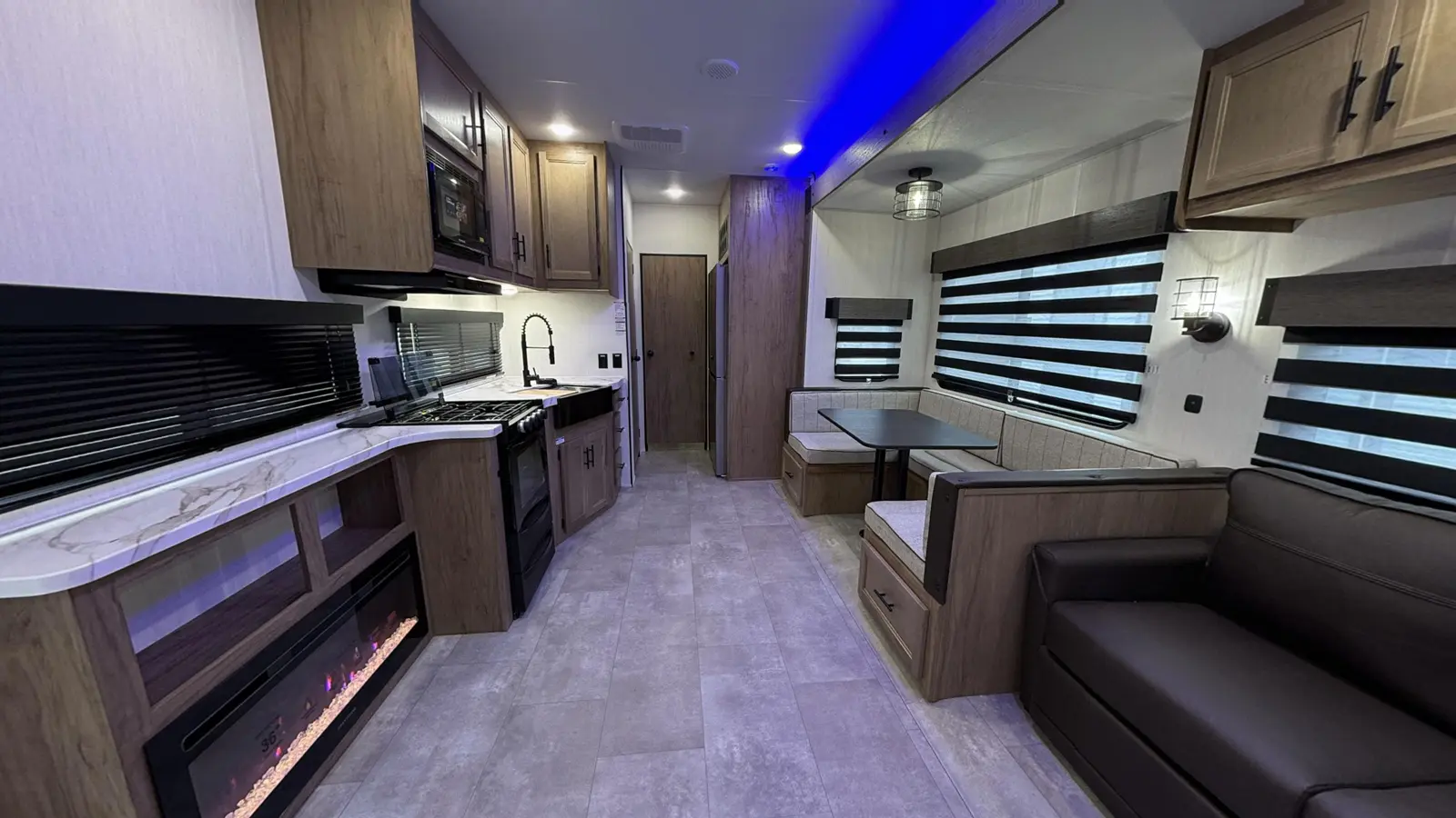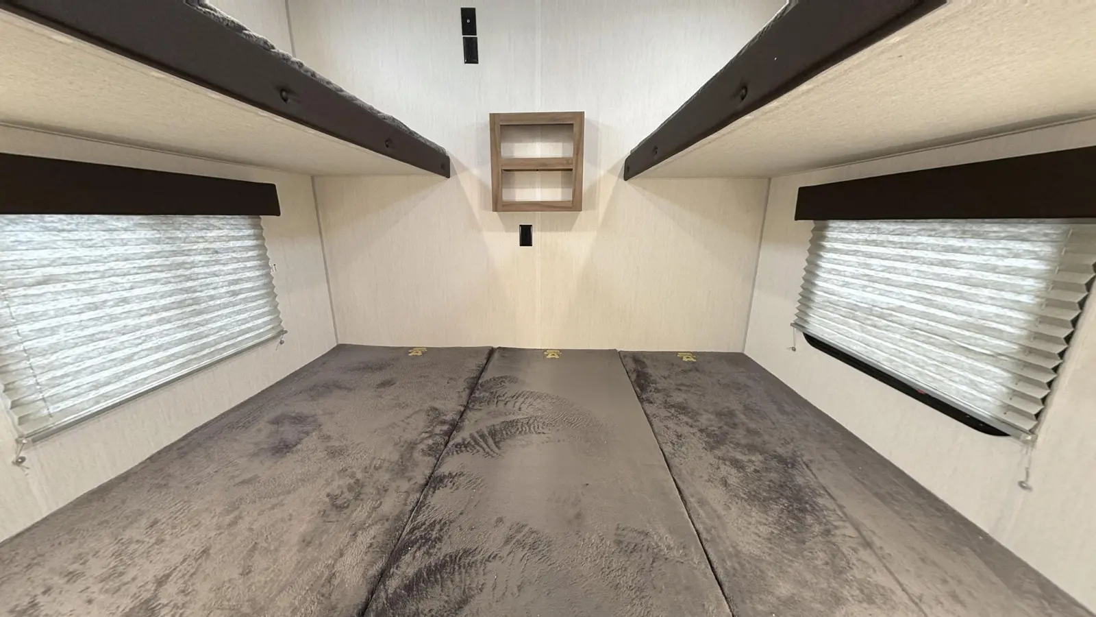 The Timberwolf 39TN floorplan has one entry and one slide out. Exterior features include: metal exterior and 18' awning. Interiors features include: bunk beds, u-dinette and front bedroom.