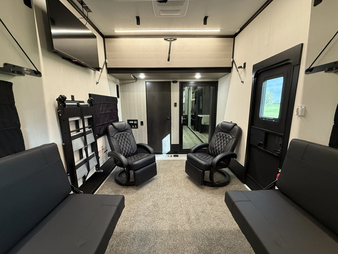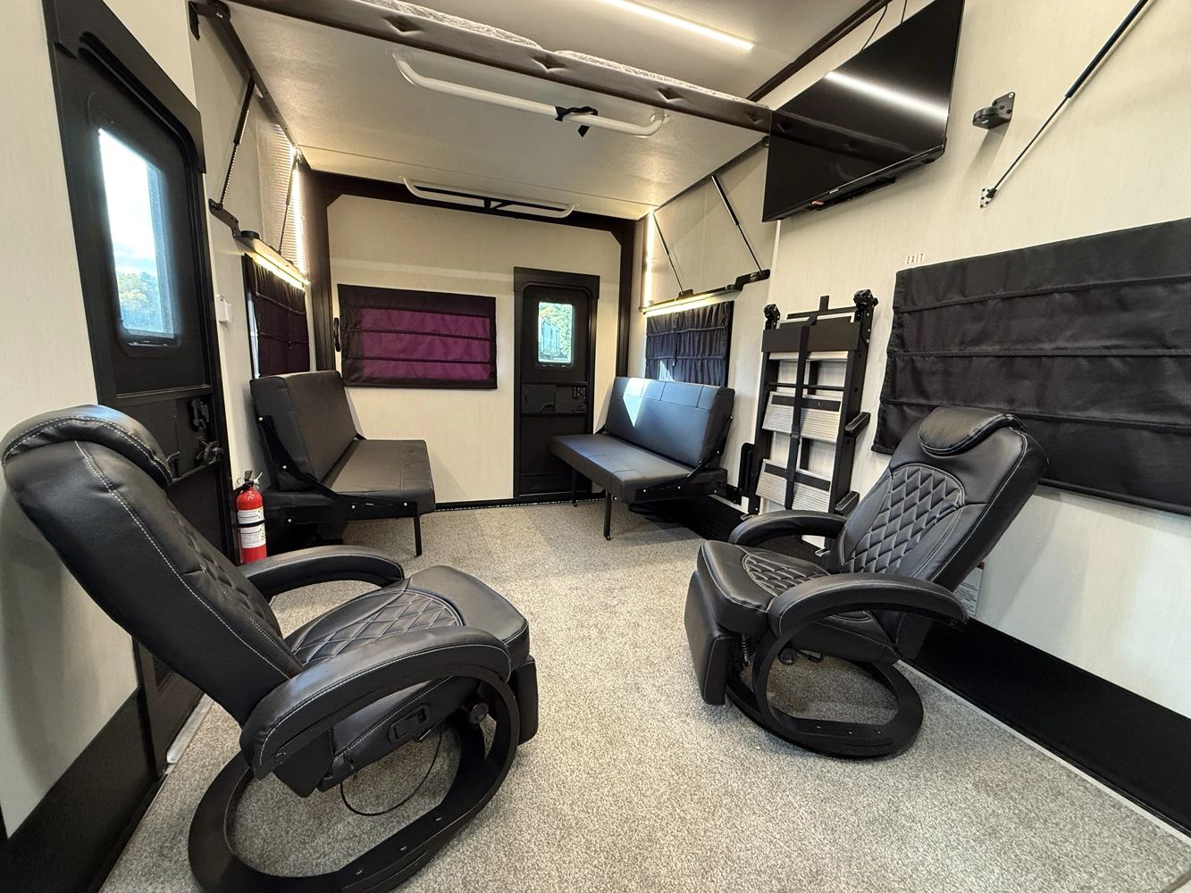 • Garage Family Room Pkg: Two Euro Recliners, Bound Removable Rug, Flastscreen TV
