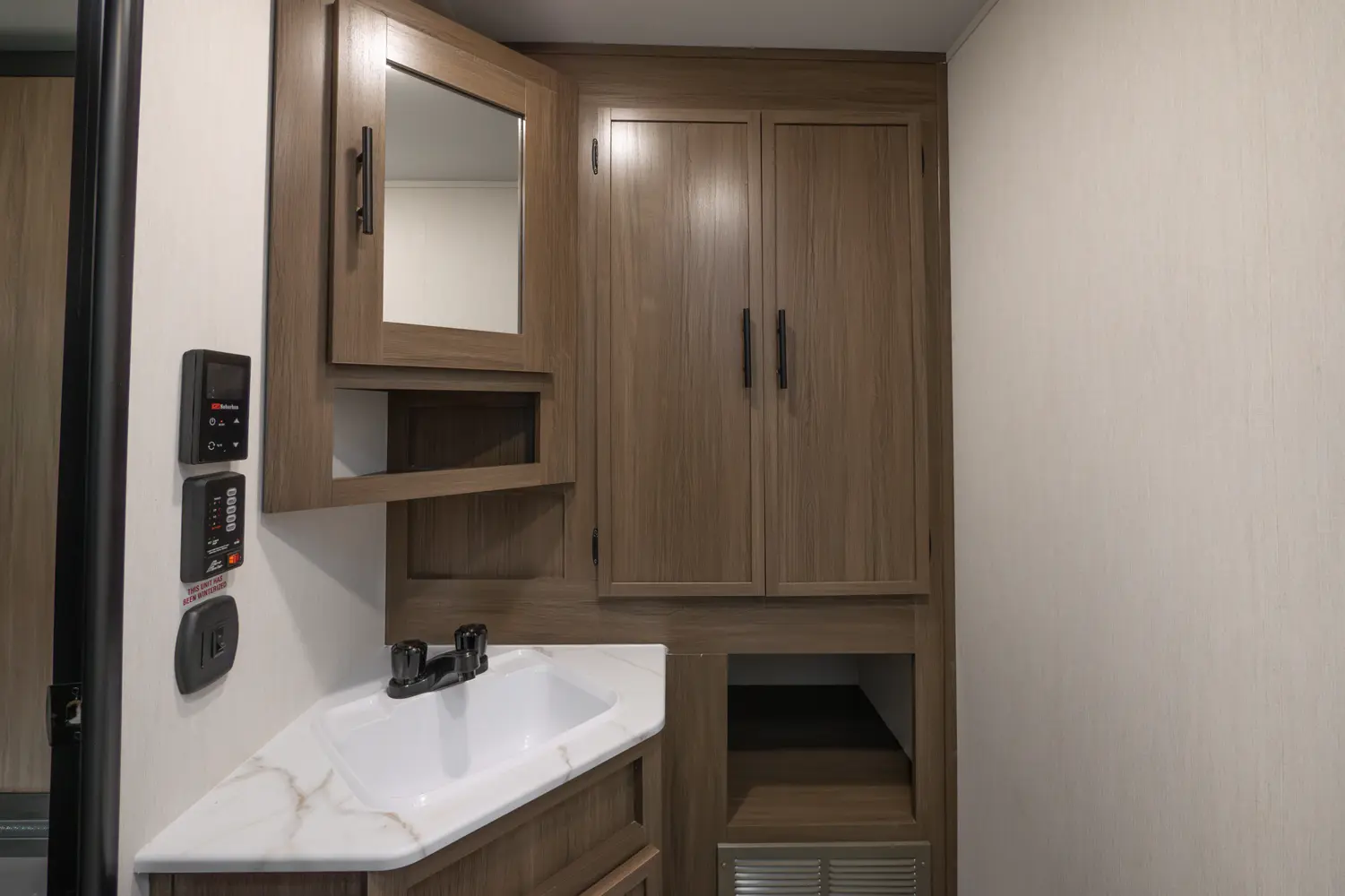 • Enclosed Overhead Storage Above Bed