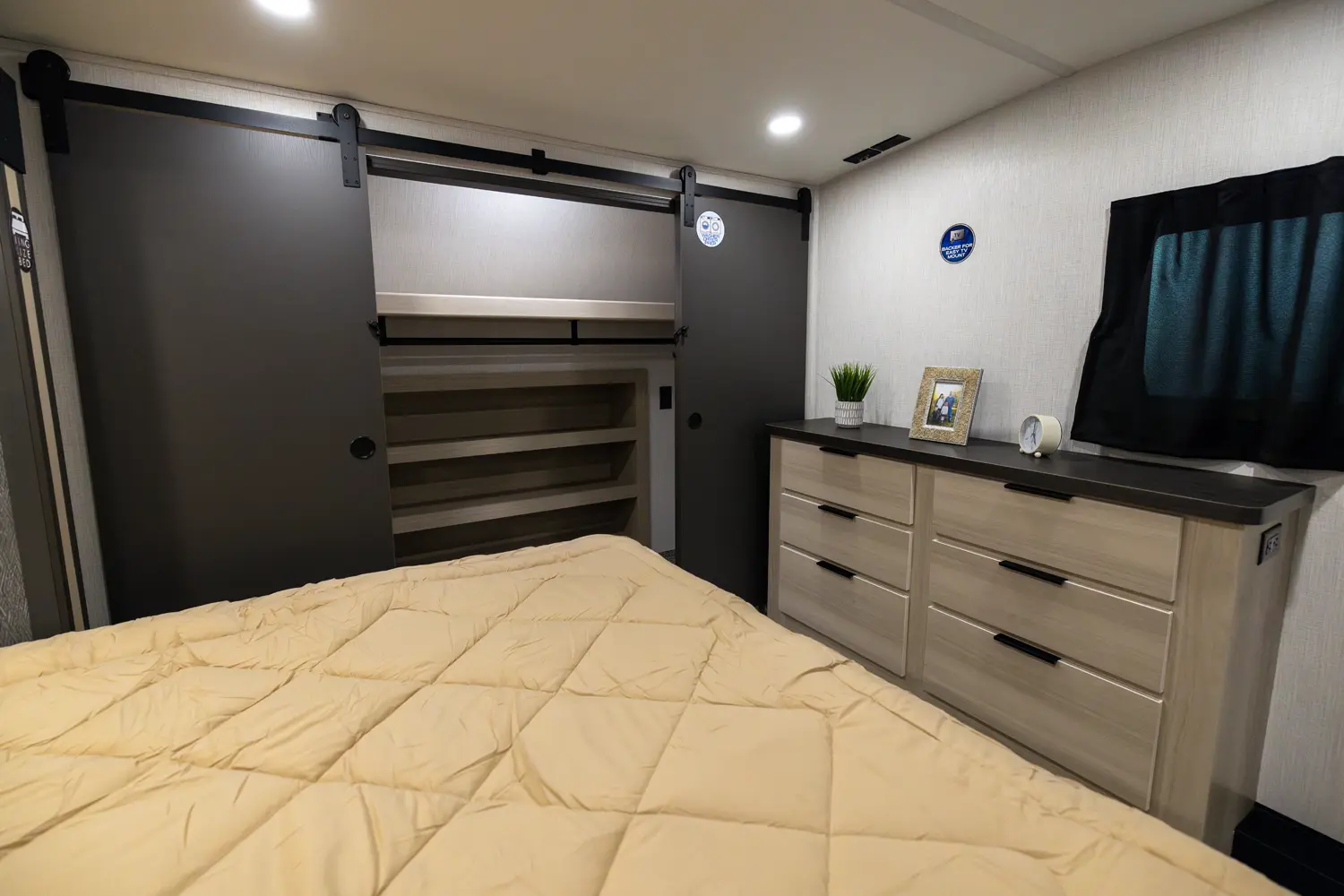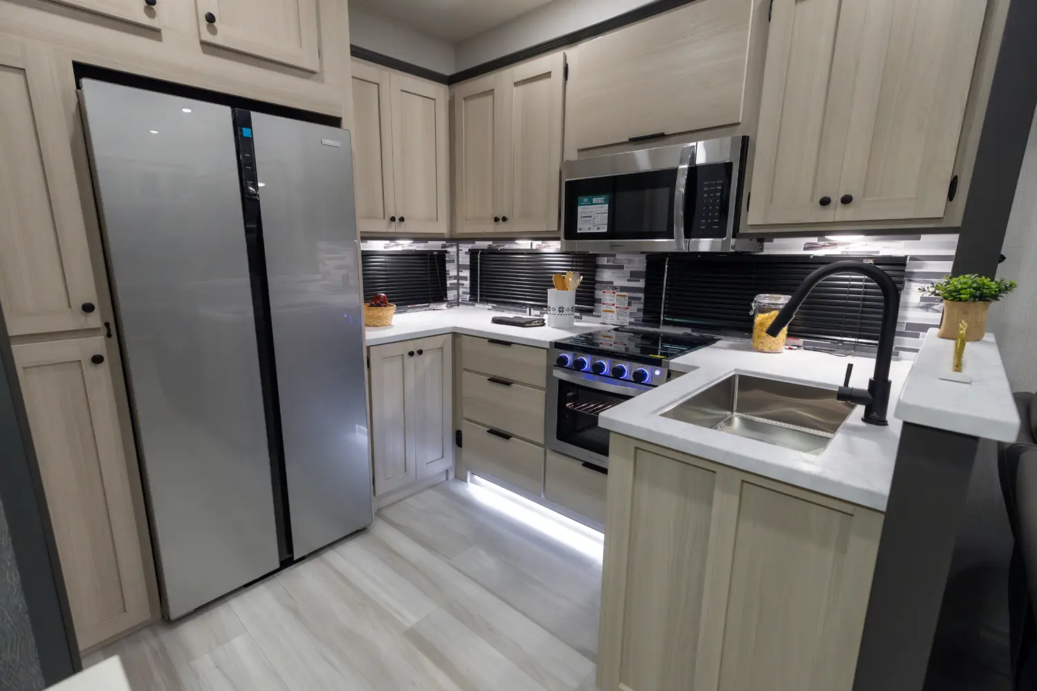 The 33CHEF is a functional rear kitchen floorplan that’s perfect for couples who love to cook and need space to work remotely! With its innovative design, spacious living room, and premium features, this 5th wheel is sure to impress.